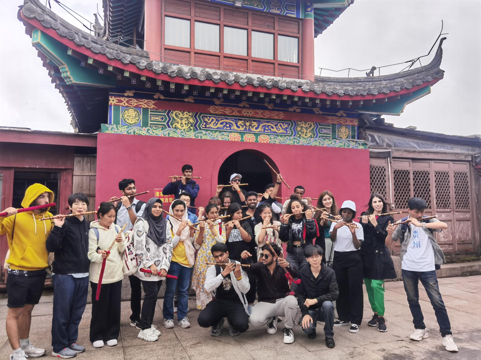 This “Knowing and Acting in Guizhou”Exchange Program registered a record of several “first times”: the first time to climb Fanjing Mountain without rain, teachers and students climbed Red Cloud Golden Summit for the first time, the first time to learn and play the Xiao flute on Fanjing Mountain, teachers and students rowed a dragon boat for the first time.