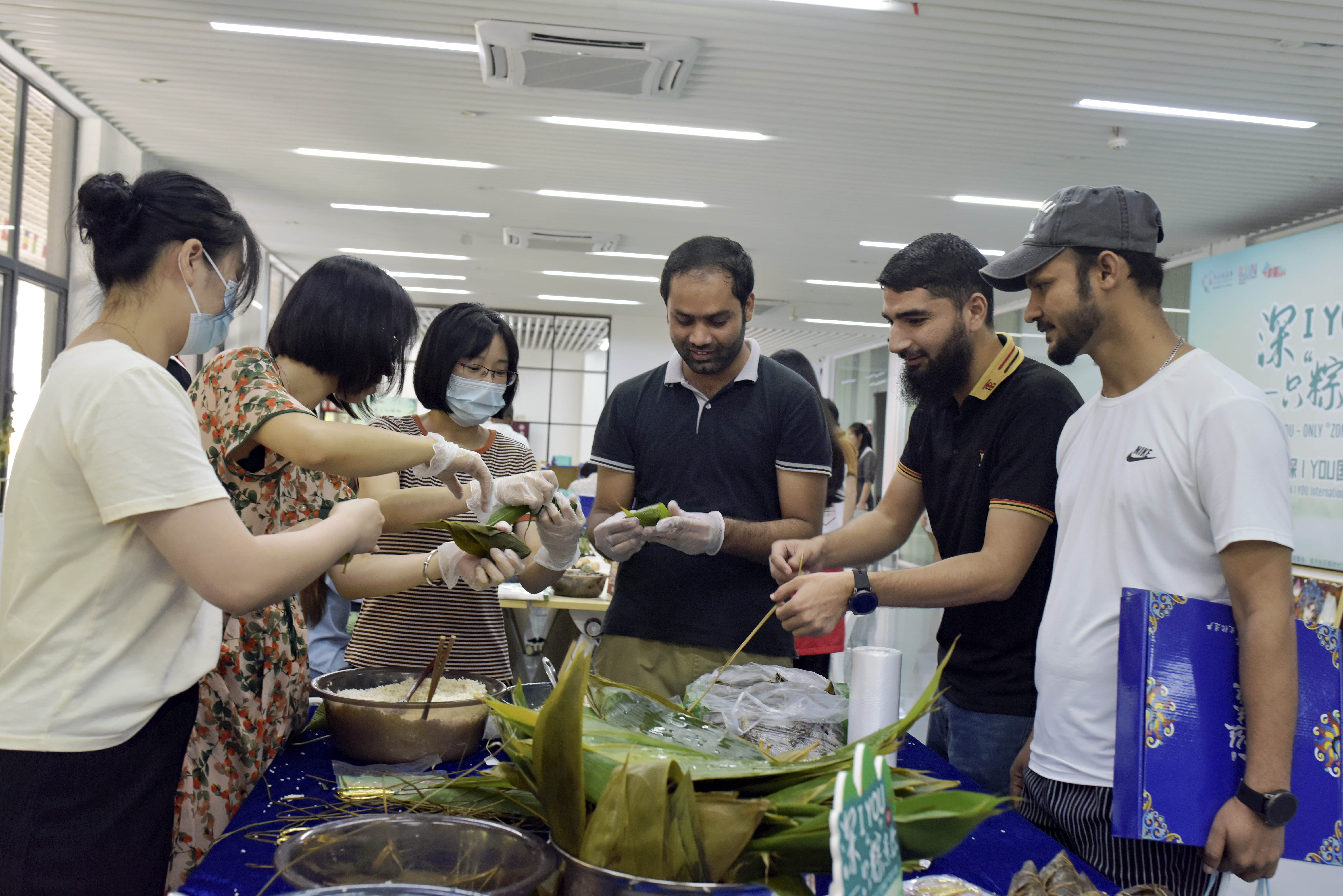 On the afternoon of June 21, to celebrate the Dragon Boat Festival, more than 50 foreign students from the College of International Exchange gathered together to experience the Dragon Boat Festival folk culture.