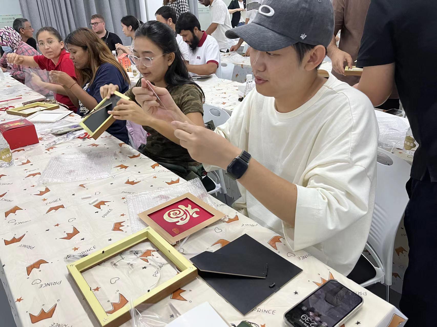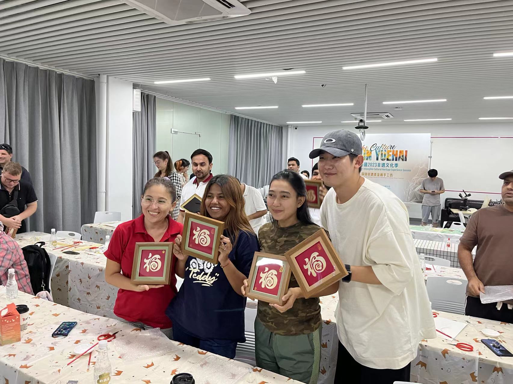 After a preliminary understanding of materials and tools, the international students mastered the basic Mackin painting skills, and then began to make Mackin paintings, and finally successfully completed their own work.