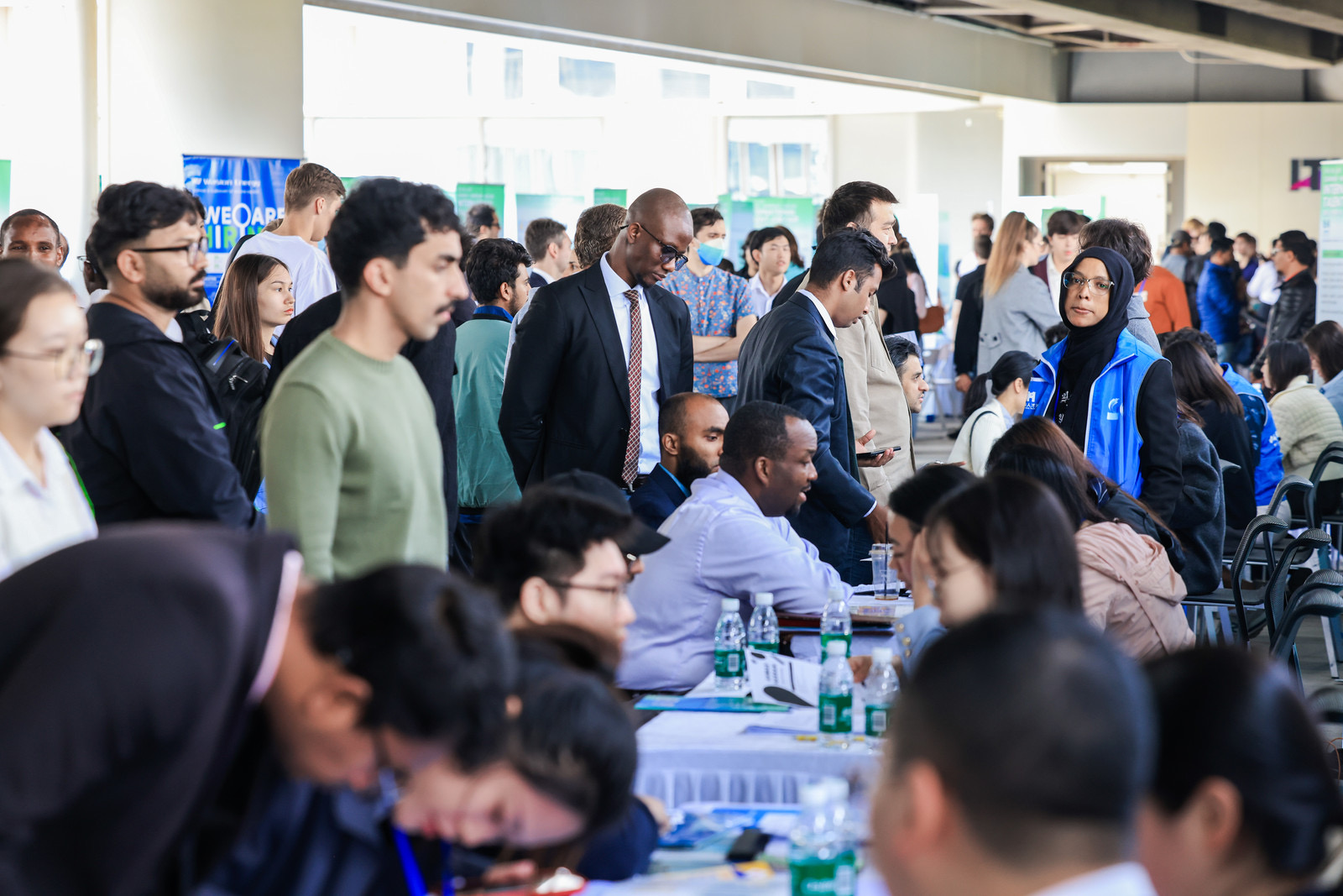 On March 9, 2025, Shenzhen University, in collaboration with Qianhai International Talent Hub and other partners, hosted a large-scale International Talent Recruitment Fair to facilitate high-quality internships and employment opportunities for its graduating international students. The event served as a vital platform for direct engagement between students and potential employers. Numerous soon-to-graduate international students from Shenzhen University attended the fair, engaging in face-to-face discussions with HR representatives from over 40 companies to explore suitable career opportunities. Additionally, more than 40 current international students volunteered at the event, providing essential on-site support and ensuring the smooth operation of the recruitment fair.
