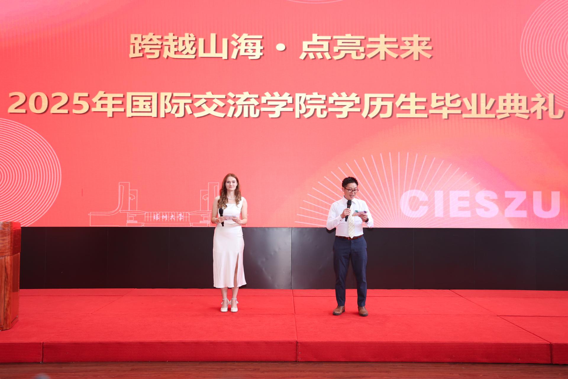 On the afternoon of June 20, 2025, golden sunlight bathed the multifunctional hall of Shenzhen University’s Alumni Square in a warm glow. Here, theCollege of International Exchange held a meticulously prepared graduation ceremony for the Class of 2025, themed “Crossing Mountains and Seas, Lighting Up the Future.”