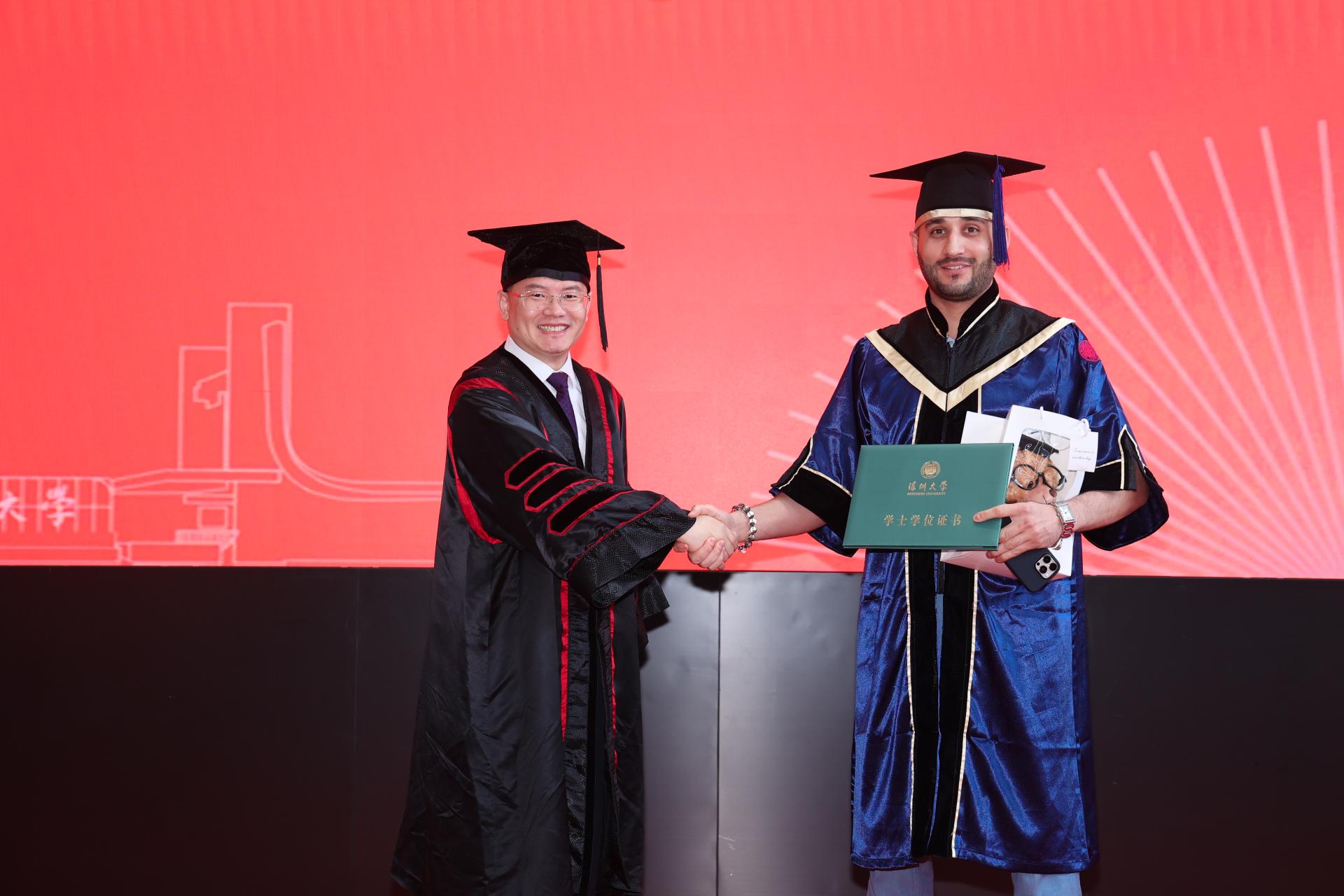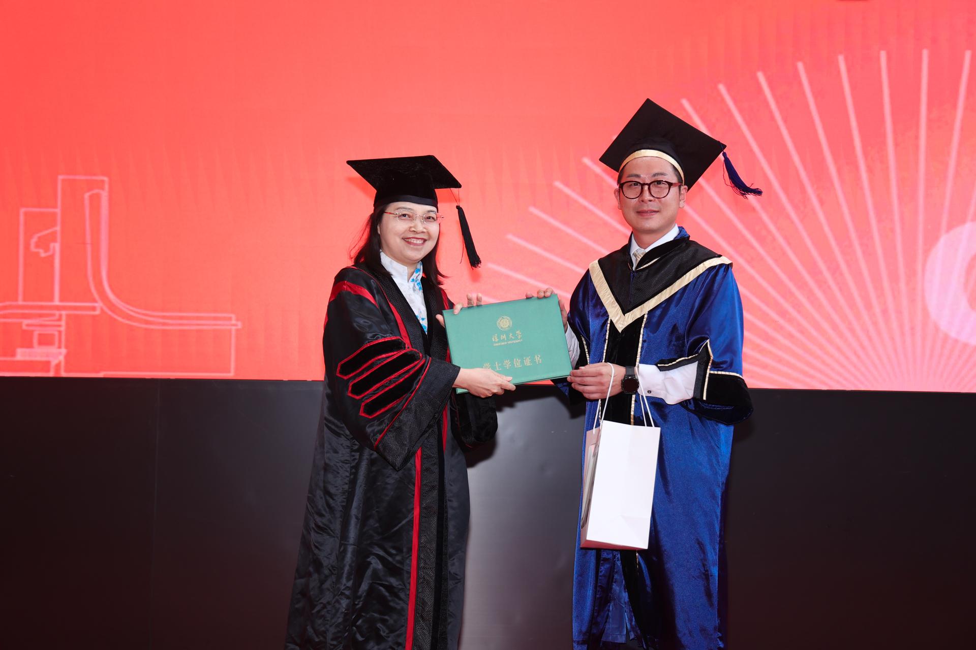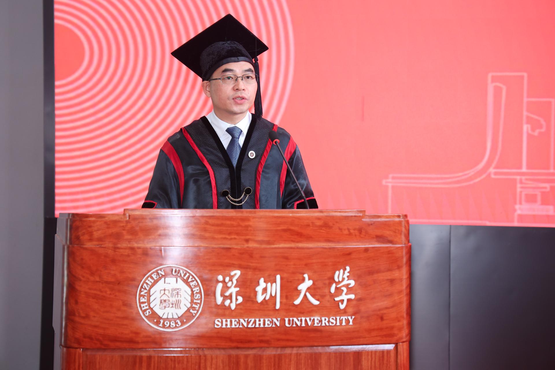 Dean Pan Yanchun stepped onto the stage with measured grace, offering his heartfelt congratulations to the graduates: "Dear students, you crossed mountains and seas to arrive here, weaving the vibrant tapestry of Shenzhen University with your youth. Today, as you embark on new journeys, may you carry our university's motto—'Self-reliance, Self-discipline, Self-empowerment'—and ride the steed of your dreams to light up the future! No matter how far you go,Shenzhen University will always take pride in you." His earnest words, weighted with conviction, stirred waves of applause.