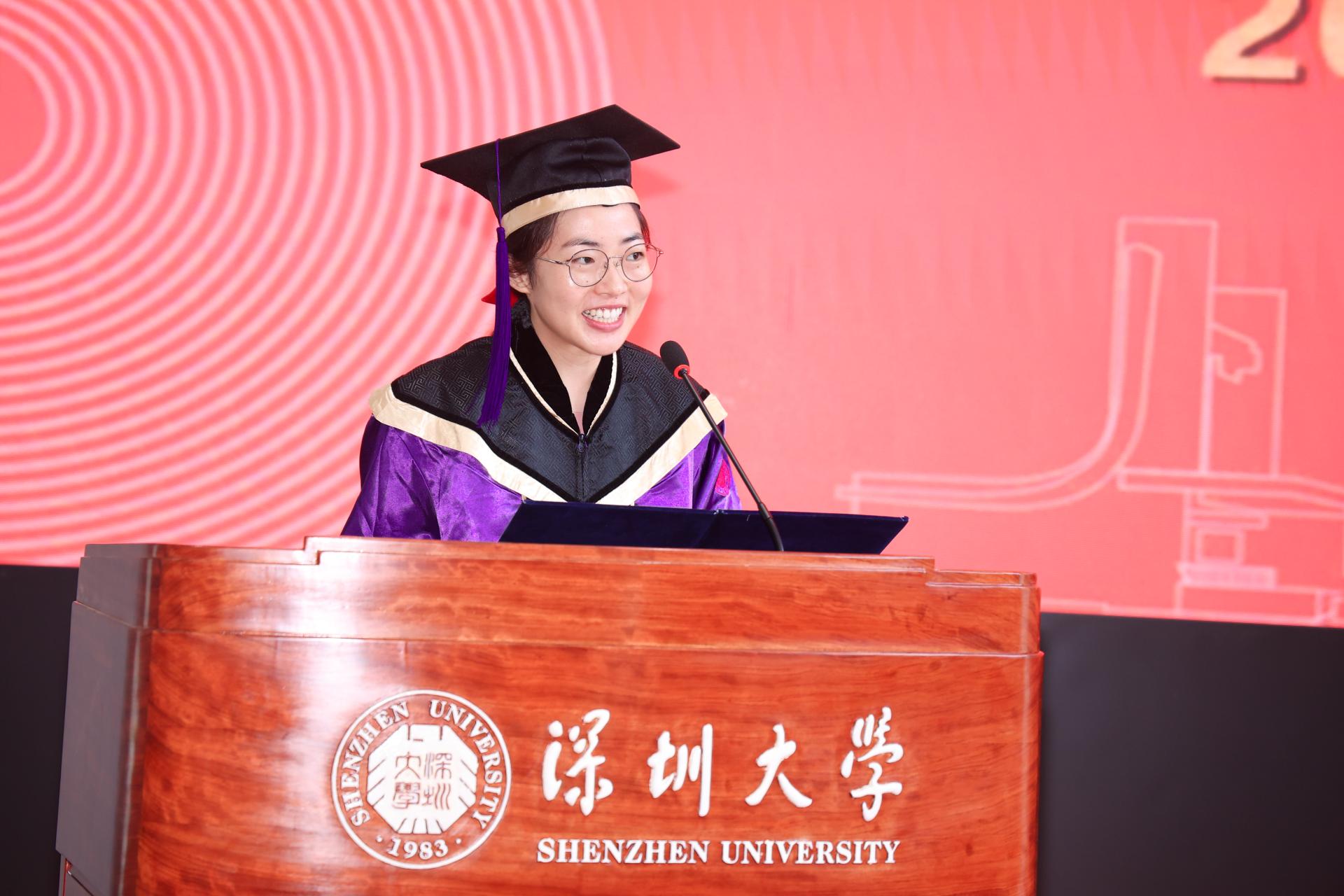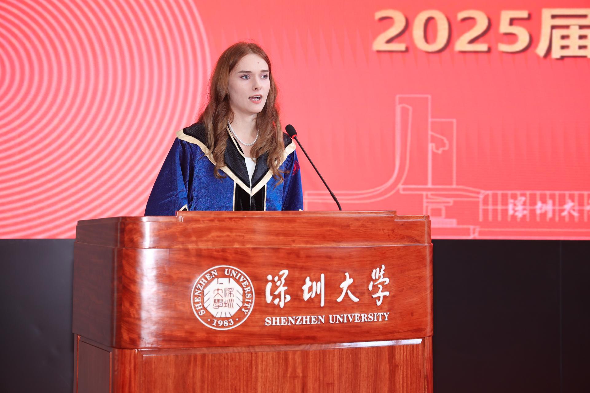 They reflected on their unforgettable years at Shenzhen University—thanking teachers for their patient guidance and classmates for their unwavering support. Kolotnitska Yuliiaspoke with resolute optimism, whilePark Eun Byol's voice trembled with emotion. Their words resonated as the most moving testament to "crossing mountains and seas," and stood as a confident proclamation of "lighting up the future."