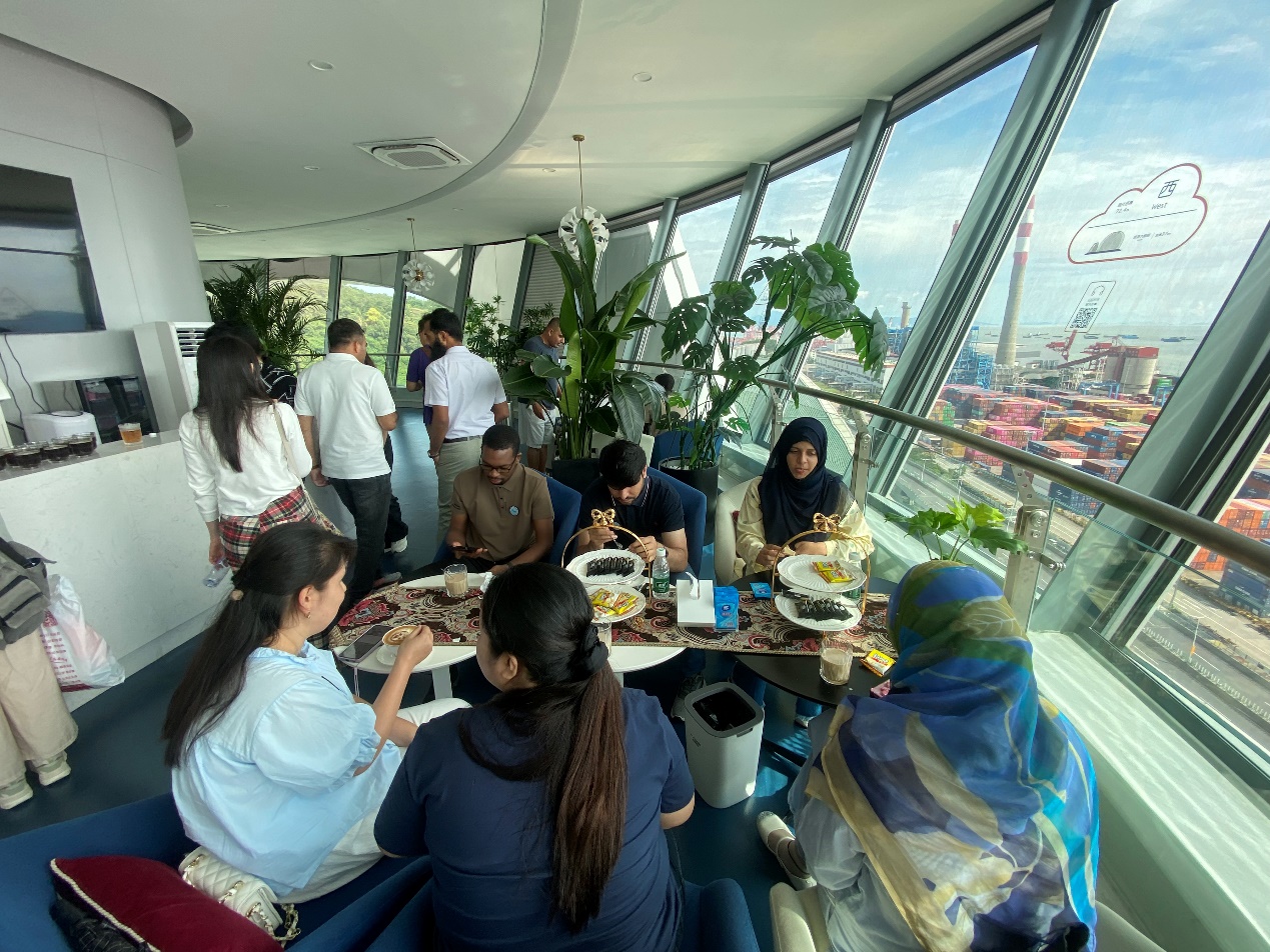 Finally, the students visited the Chimney Observation Deck, where they took in panoramic views of the Qianhai Free Trade Zone, Mawan Port, Mawan Power Plant, and the Lingding Ocean—a striking vantage point to observe Shenzhen’s integration of industry, trade, and coastal ecology.