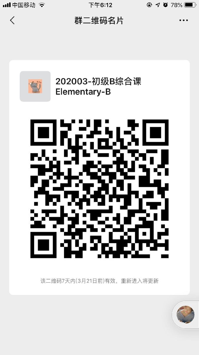 主选班级:入门A、入门B、初级A、初级B 时间:3月23日-3月27日