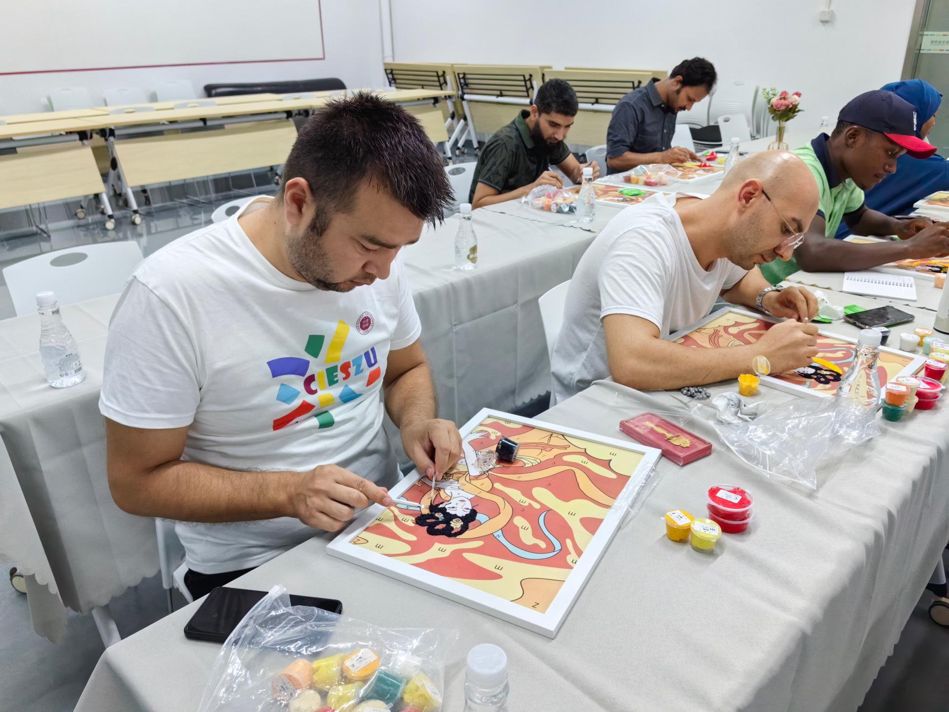 On October 19 and 20 afternoon, 2023, International students of our school participated in the intangible cultural experience activity in Room 201 of Zhaoxi Building: Handmade Painting - Chinese DIY pulp painting.
