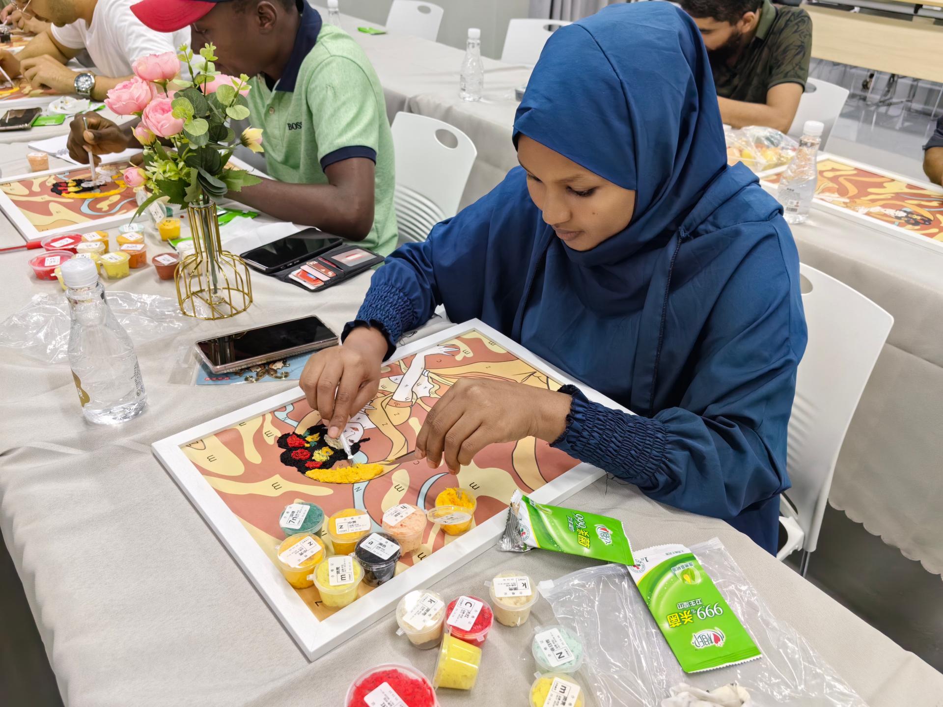 Under the guidance of teachers, international students learn how to make pulp, color, use pulp painting and other skills to make their own intangible cultural heritage pulp painting works. Everyone did it very carefully, with small tweezers in one hand and bamboo skewers in the other hand, patiently and carefully stacked the paper pulp of different colors, and personally experienced the charm of the traditional craft and felt the profound intangible cultural heritage.