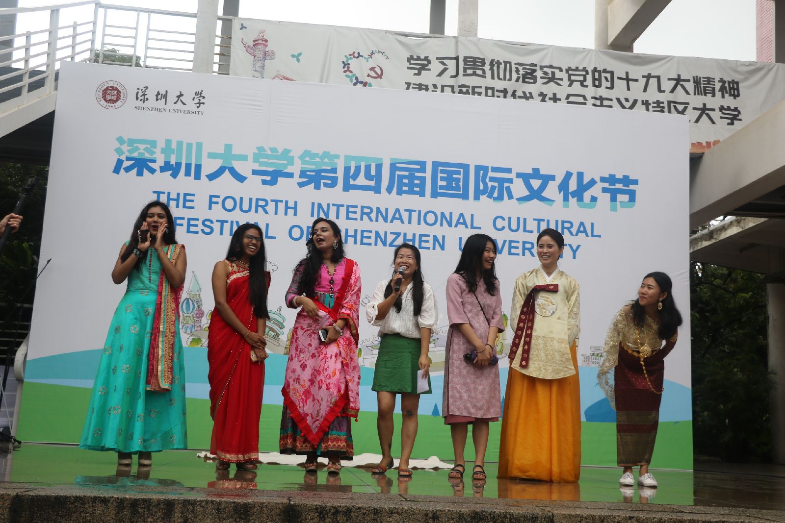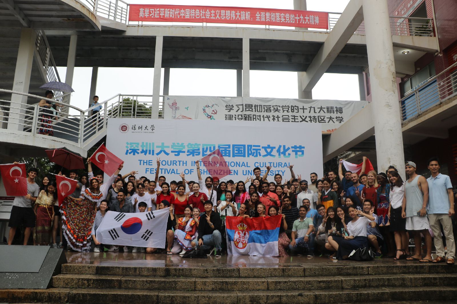 活动当天,来自二十五个国家和地区的深大留学生、交换生们带来了自己本国的特色美食与我们分享。这些世界各地的小哥哥小姐姐们穿上自己本国的特色服装为我们带来了一场又一场精彩的表演。虽然活动过程中下了大雨,但就算这风雨再大,也浇灭不了我们对国际文化节的热情。