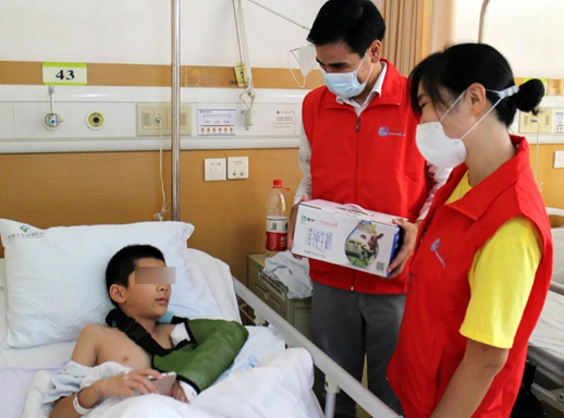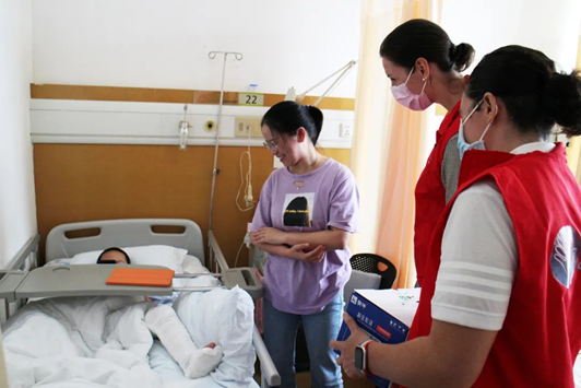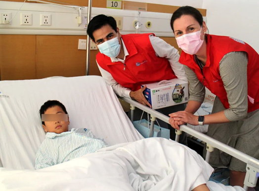 外国志愿者带着礼物走进病房,探望行动不便的小朋友。由于时间有限不能作太多的逗留,大家都分外珍惜这次难得的见面机会,心头的千语万语凝聚成一句:“分开的三百天里,我很想你!”