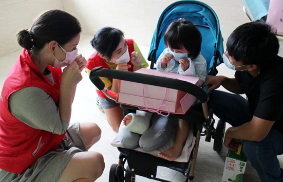 为了孩子们的健康着想,大家严格按照院方提出的要求进行活动:(1)带队老师在内,参加人数不得超过5人、活动全程必须佩戴口罩、活动时间不能超过一个小时;(2)所有参加人员必须在活动开展三天前进行核酸检测并向院方提供检测结果;(3)所有礼品进入病房前必须进行消毒。为此参与活动的国际志愿者和带队教师特意到医院进行了核酸检测,崇上基金会的工作人员精心准备了精美的礼品,并且提前做好了物品表面的消毒工作。