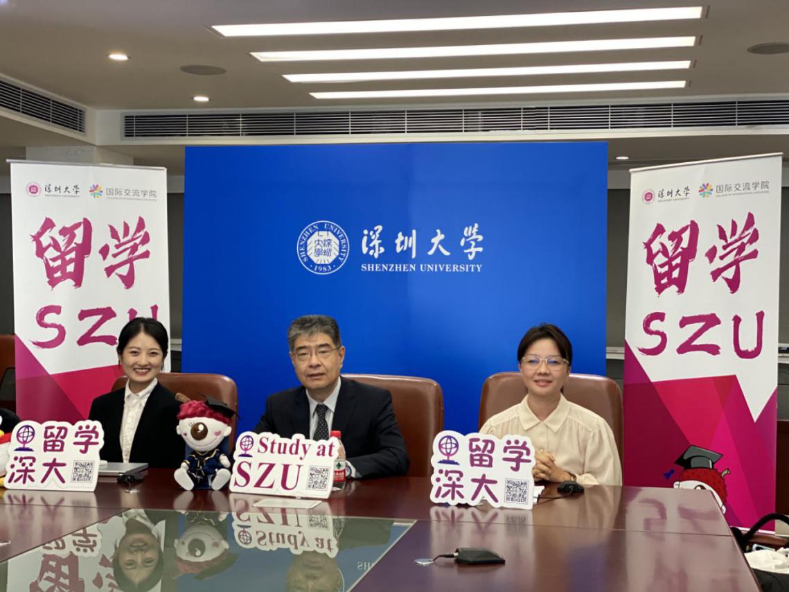 本次展会由学校宣讲和学生咨询两个环节组成,学校宣讲由国际交流学院副院长古维负责。她主要从来华留学专业学科设置、奖学金分配、签证安排、校园生活等方面,向参展人员详细介绍了深大。我校展位学生注册人数为144人。在学生一对一沟通环节,深大学生访问量占据了当时段学生量的50%。参展老师们克服了时差困难,从晚上21点到凌晨1点坚守在线上,积极回复学生和家长关于来深留学方面的提问。