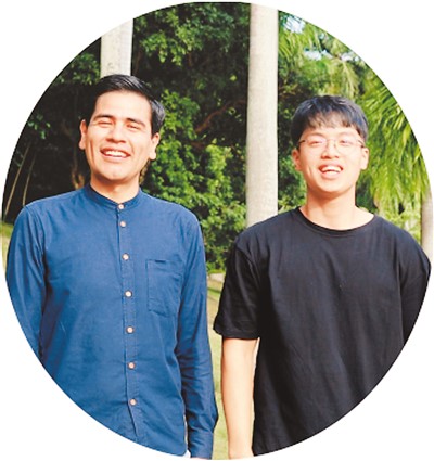 合唱团成员成涵(左)、洪发辉在录制音乐作品MV