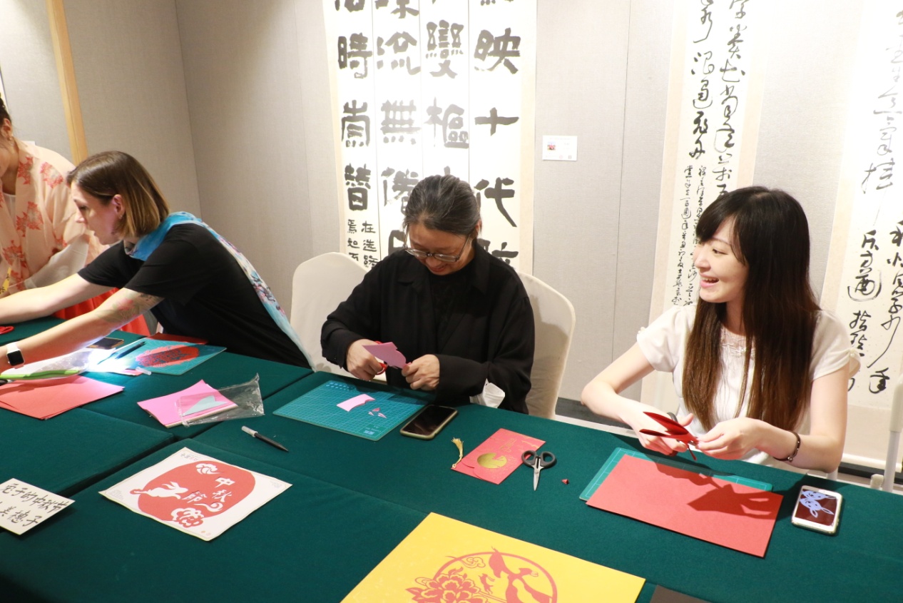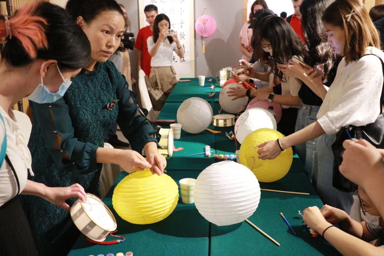 在接下来的文化体验环节中,中外师生们共同体验了制作中秋月饼、剪纸、花灯、写书法等中华传统民俗活动。现场氛围热闹而又温馨,在制作过程中,国际学生纷纷拿起手机拍下自己的月饼,给远方的亲朋好友分享在中国庆祝中秋接的时刻。通过体验式互动活动,促进国际学生对中华传统文化的理解和认知,加深国际学生与传统文化的情感联结,更好地理解中华传统文化,讲好中国故事,大家纷纷表示,活动让他们在亲自动手中感受到传统文化带来的快乐,也更好地理解了中国传统佳节的意义。