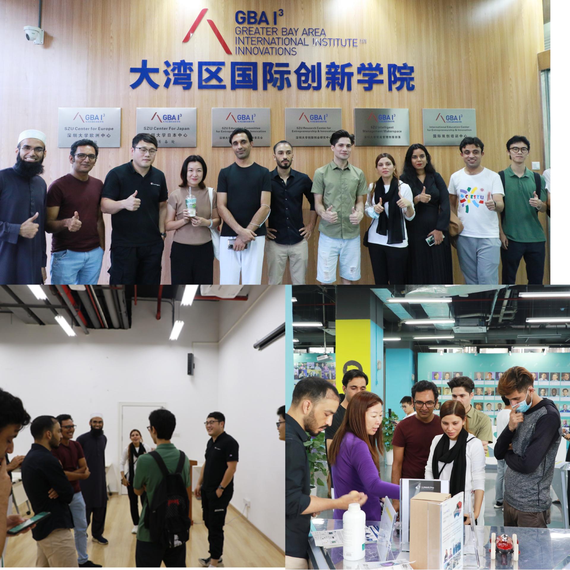 柔宇参观交流结束后,同学们又参观了深圳大学创新创业教育中心与大湾区国际创新学院。留学生们在这里看到了来自注册在美国硅谷创业公司的科技产品和先进项目。深圳大学创新创业教育中心为创业学生提供了孵化室、创业实战室等大面积的园区办公场地,方便学生的创新创业项目发展和落地。留学生们纷纷对入孵项目和学生投以羡慕的目光。