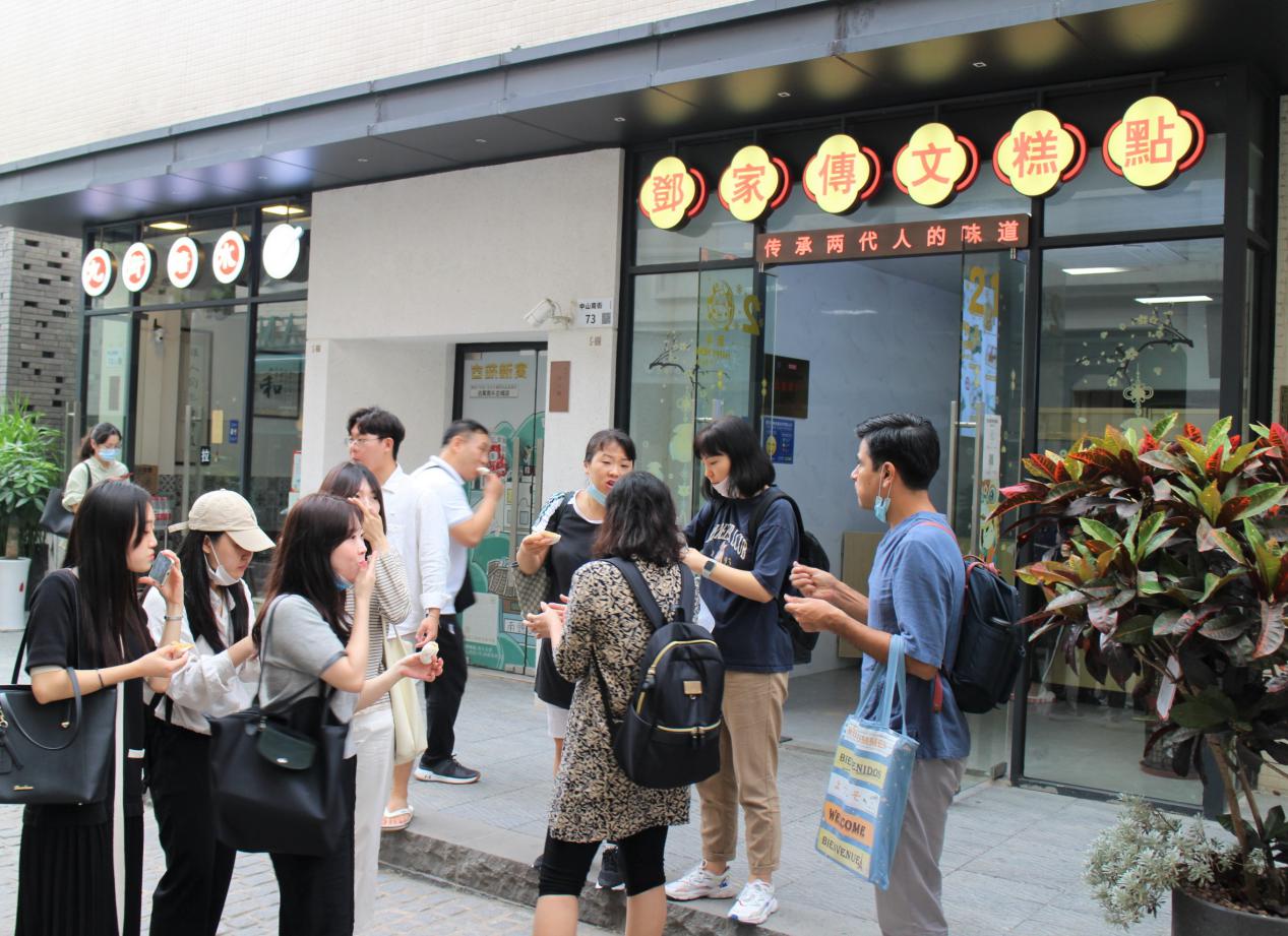 报德祠中同学们听老师讲解了爱国人士吴登良慷慨助学的事迹,并由此了解到“登良路”的来历,住在蛇口片区的同学们纷纷惊呼:“哇!原来‘登良路’的名字是这样来的!”参观中大家还品尝了广东传统糕点美食,津津有味赞不绝口。