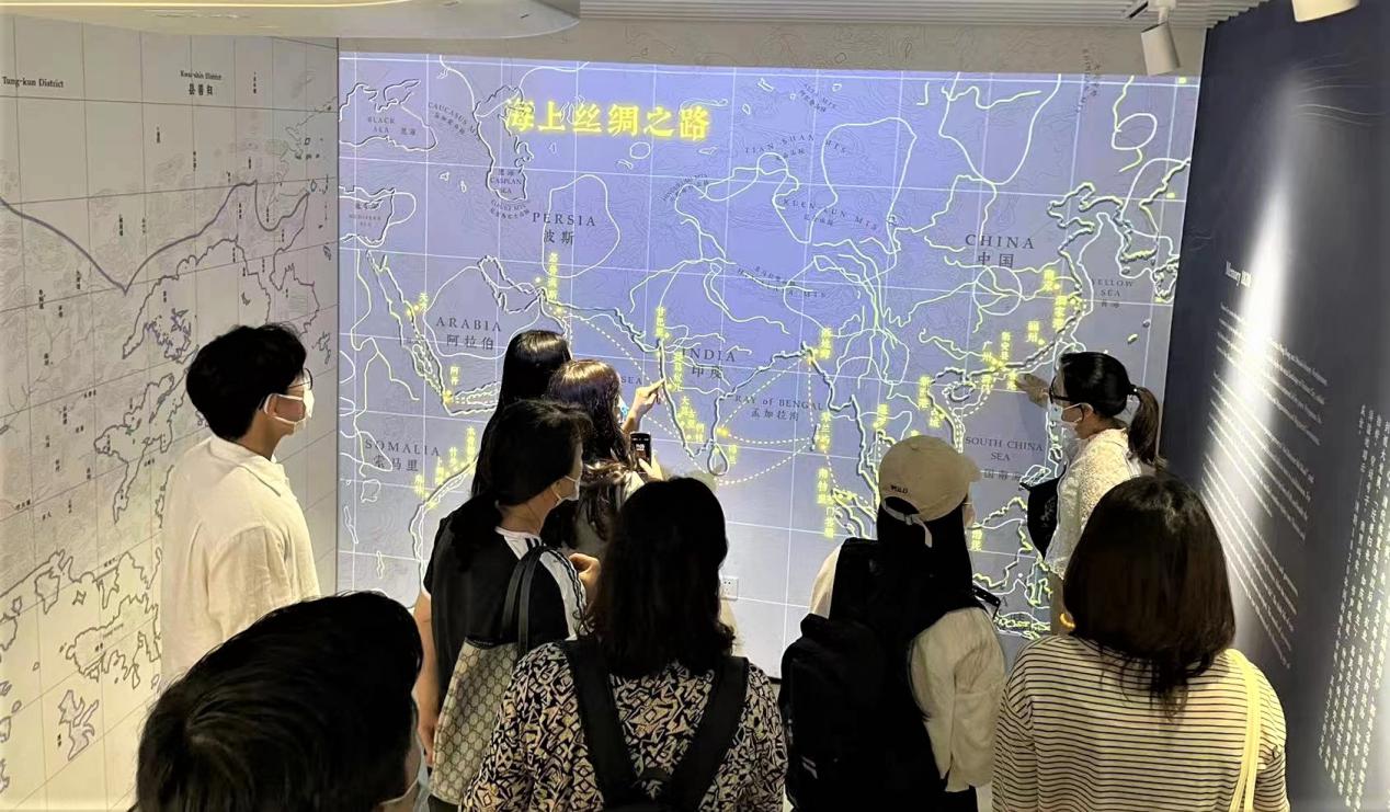 出土文物展厅里同学们饶有兴致地参观了海上丝绸之路以及出土瓷器的修复过程,还了解到“香港”名字的由来以及深港澳三地的贸易往来历史。