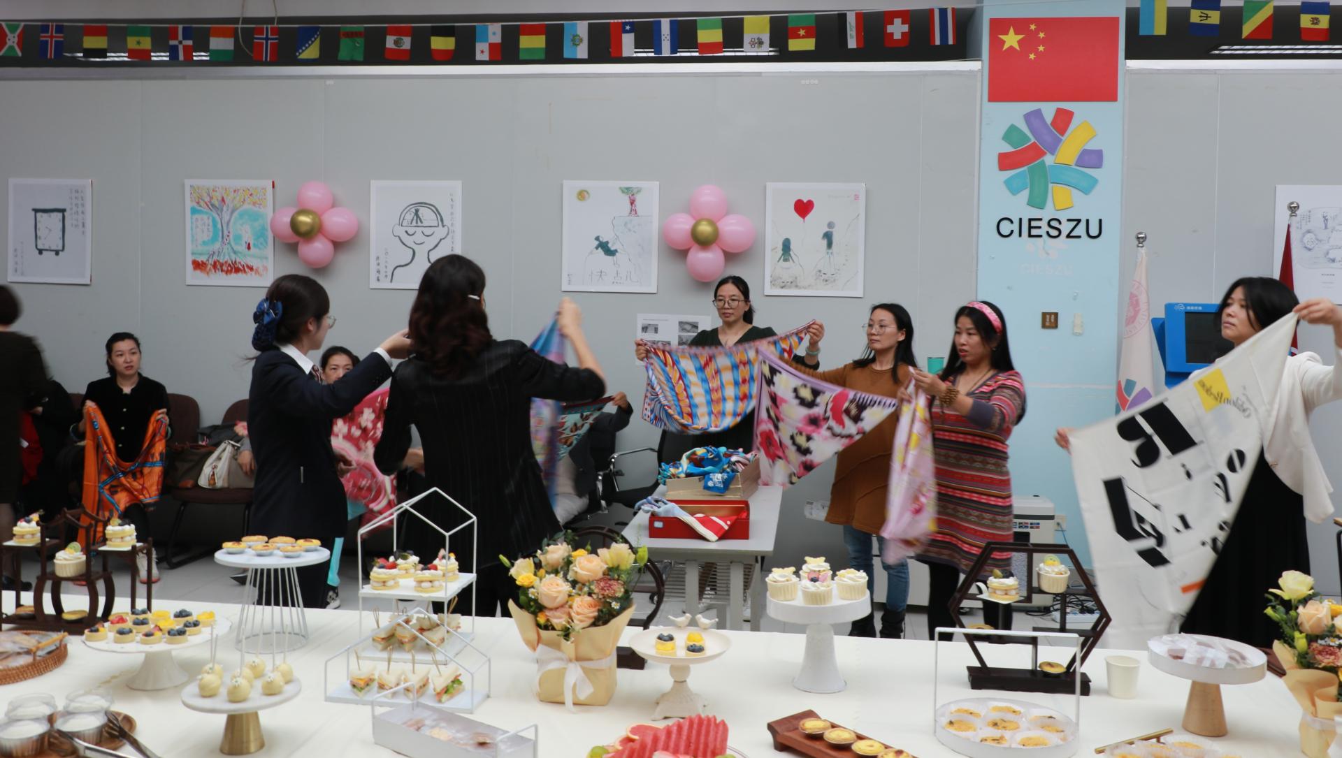 13:00活动正式开启,潘燕春院长和黄雪峰书记的开场白为活动奠定了振奋人心的基调,他们对刘彦峰教授多年来对学院学科建设的全情投入和特别贡献表示衷心感谢。刘彦峰教授的荣休感言发自肺腑,语重心长,鼓舞大家团结一心、共克时艰。刘慧军教授特意为刘彦峰教授播放了一首感人至深的歌曲,那是怎样的一种美好回忆呢?这次活动还有一个亮点,就是国交学院工会和中国银行深大支行合作共赢。他们为老师们准备了精美的小礼品,还专门请人教老师们系丝巾,这可是女老师们的最爱??!现场洋溢着热烈喜庆的气氛。