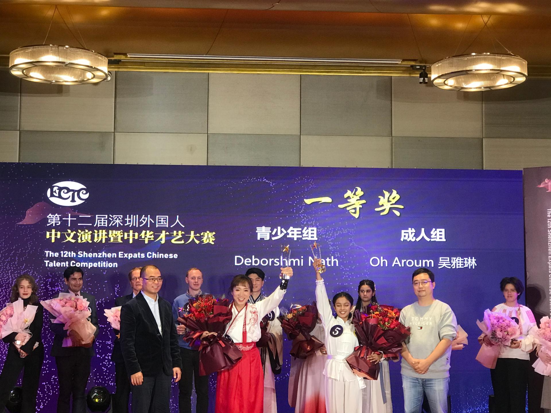 十二月五日,第十二届深圳外国人中文演讲暨中华才艺大赛决赛在南山区益田威斯汀酒店举行,比赛现场气氛热烈。经过激烈的角逐,深圳大学国际交流学院汉语国际教育硕士专业的吴雅琳(韩国、一年级研究生)、金问哲(韩国、一年级研究生)分别获得一等奖和二等奖,安娜(俄罗斯、三年级研究生)和成涵(墨西哥、一年级研究生)获得了优秀奖,深圳大学国际交流学院也因此得到了“最佳组织奖”的称号。