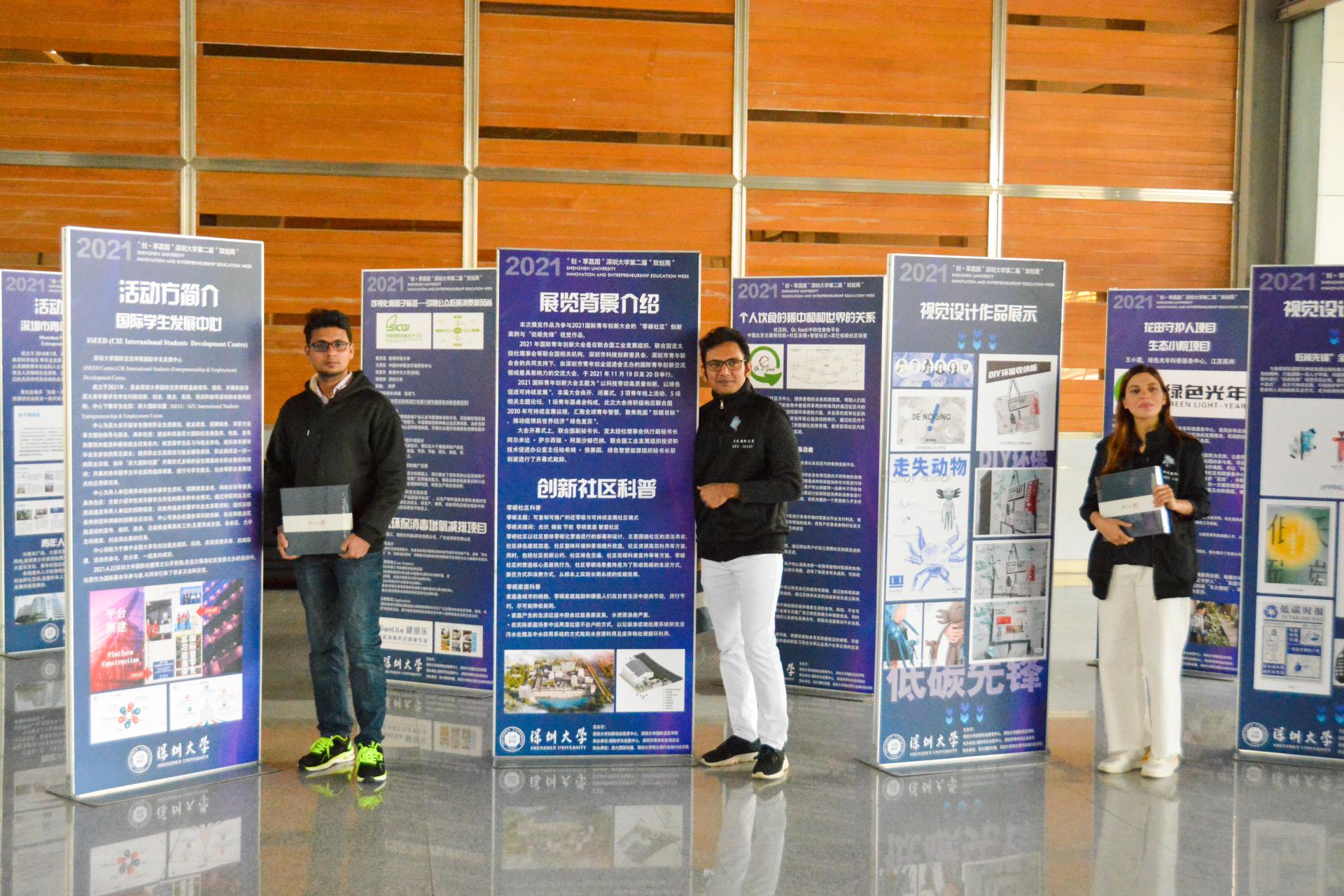 本次活动分为三部分,第一部分是2021国际青年“零碳社区”优秀案例与“低碳先锋”视觉作品展。本次展览作品为参与2021国际青年创新大会的“零碳社区”创新案例与“低碳先锋”视觉作品。第二部分是“绿色金融”碳金融研究成果及创业实践成果展示,;第三部分是深大国际创盟(ISEEU)公益活动,由来自深大的国际学生,以环保出行,垃圾分类,,绿色能源等主题的手工制作活动,从手作体验中倡导人们从简单的衣食住行入手,自发履行低碳义务,充分体现了人与城市、环境和谐共生的友好理念。不但树立环保生活理念,宣传和呼吁大家低碳出行,绿色生活、节约水资源。同时又将文化艺术与环保理念深度融合,不断倡导文明环保的生活方式,有效激发人们绿色生活的动力。