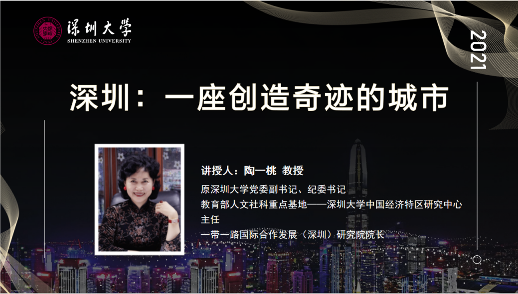 在谈及深圳过去与未来的使命与发展时,陶教授从深圳发展的足迹、深圳经济特区对中国改革开放的历史性贡献、深圳新时代的新使命三方面进行阐述。