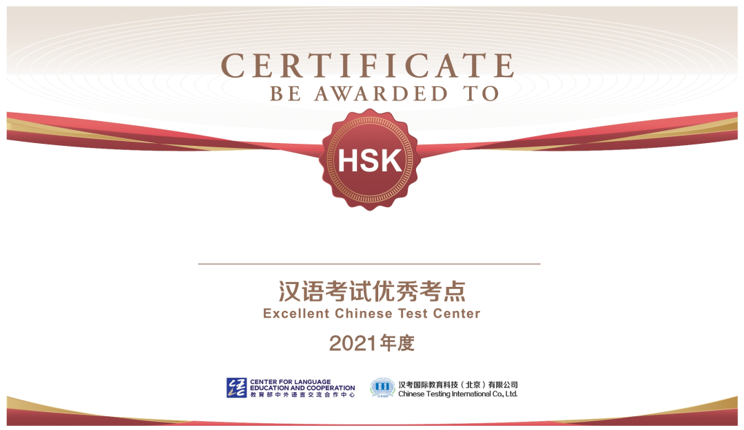 喜报:我校HSK考试中心喜获“2021年度中文考试优秀考点”称号