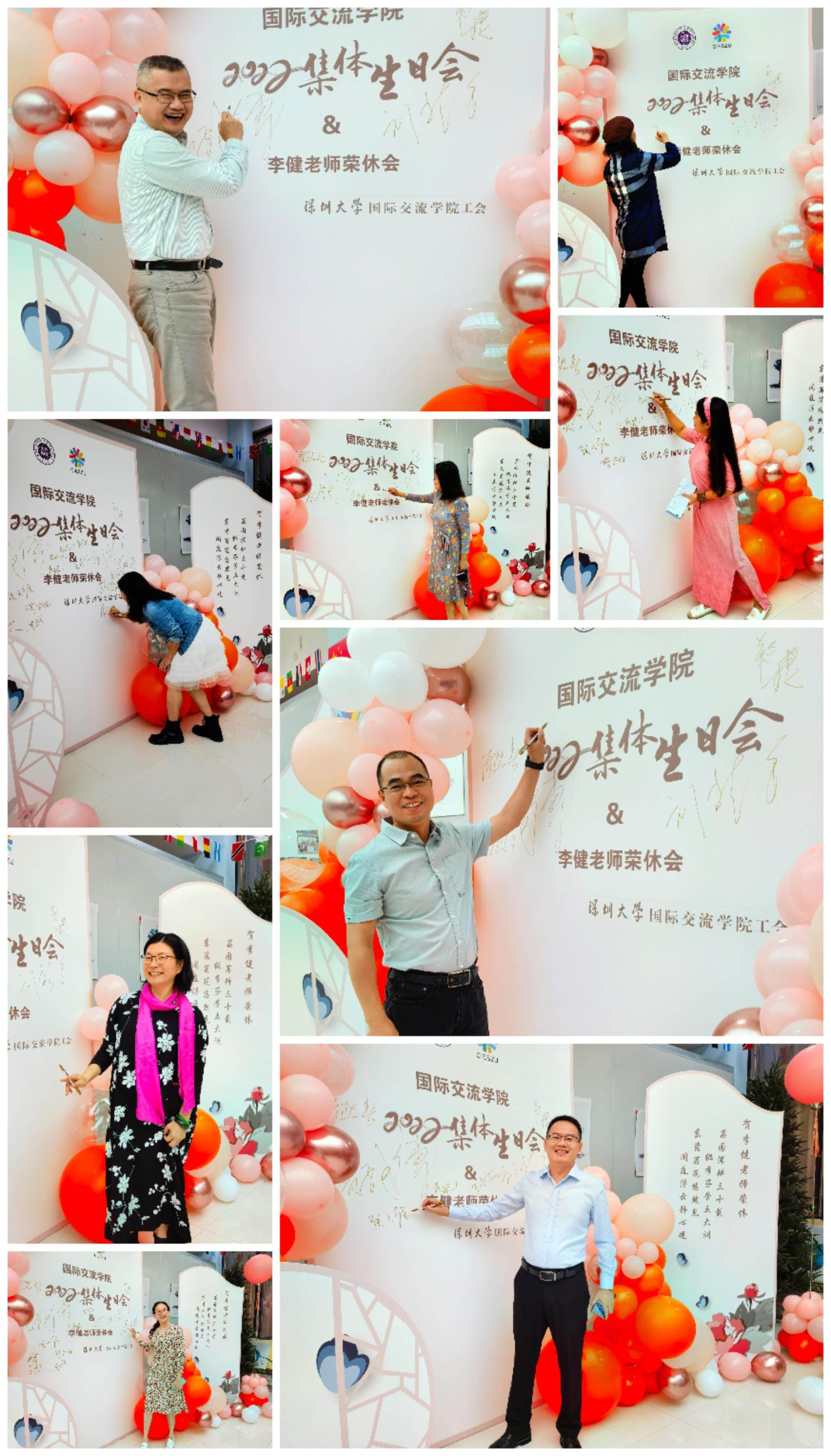 南山新雨后,天气渐来秋。拨开疫情的雾霾,汇聚老师们的热情。2022年11月25日中午1:00,在不期而遇的秋风细雨中,国际交流学院集体生日会暨李健老师荣休会终于如期而至。