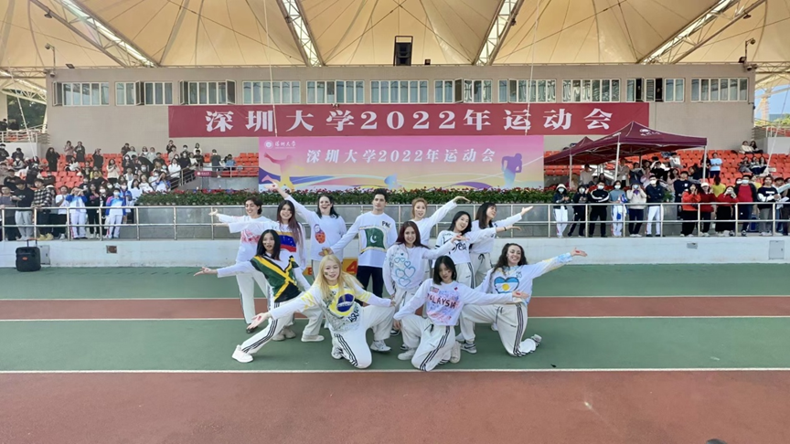 下午,热爱舞蹈的同学们也组建了一支活力四射的啦啦队。大家在白T恤上画上了自己国家的国旗。来自不同国家不同民族的国际学生齐聚深大,跳出青春之舞。