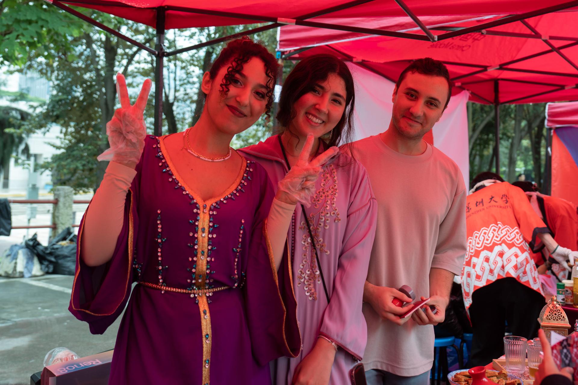 现场留学生们身着节日盛装,在展台前热情展示本国的特色服饰、美食和手工艺品,中外师生、校友们流连于各国展台合影留念,领取“护照本”在各个展台盖章“打卡”集齐纪念章,品尝留学生们亲手制作的特色美食,包括阿根廷的牛奶焦糖卷、德国的香肠土豆沙拉、奥地利的维内亚鸡排、日式炒面、韩国的泡菜饼、巴基斯坦的鸡肉香饭、法国的奶酪与甜点、土耳其的烤肉、泰国的芒果糯米饭、埃塞俄比亚的咖喔炖鸡,不一而足。现场观众除了可以大快朵颐地品尝各国美食,还体验了独具特色而丰富有趣的游戏,如印度海娜、眉心红点体验、中国的汉服体验、马来西亚的冲格游戏等。畅游各国展台,大家既体验了不同国家的民族习俗,也感受到了多姿多彩的文化风情。世界多彩文化在本届国际文化节上交相辉映,各国友人与师生、校友们共享文化交流的盛事。作为深圳大学国际交流学院一年一度的文化重头戏,本届国际文化节在展示世界各地优秀文化的同时,也重视向国际学生讲好中国故事,让来华留学生通过多种形式了解中国。