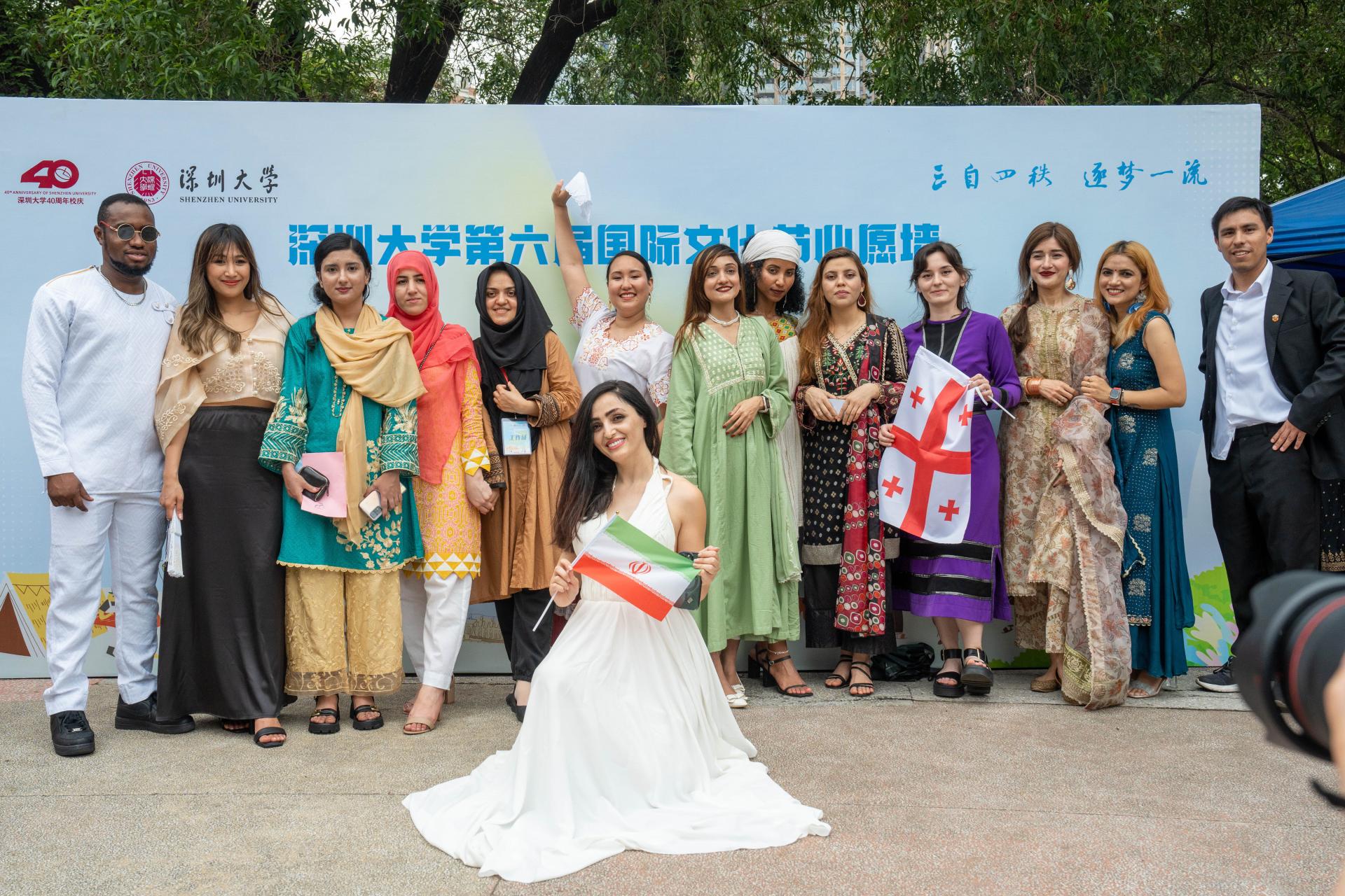2023年5月13日,由国际交流学院承办的深圳大学第六届国际文化节活动在粤海校区石头坞广场隆重举行。本届国际文化节活动以“迎四秩校庆,展五洲风情”为主题,内容丰富,形式多元,包括各国传统游戏体验、各国传统舞蹈表演、各国传统服装走秀、各国传统美食品尝、留学生合唱团演出等,旨在展示世界各国独具特色的文化风情,为全校师生与校友们提供了解世界的窗口。来自我院24个国家的留学生在文化节上设立本国文化展台,现场进行了精彩的文艺演出。今年恰逢深圳大学40周年校庆,当天又值深圳大学校友返校日,中外师生、返校校友欢聚一堂,展民族风采,观世界风情。