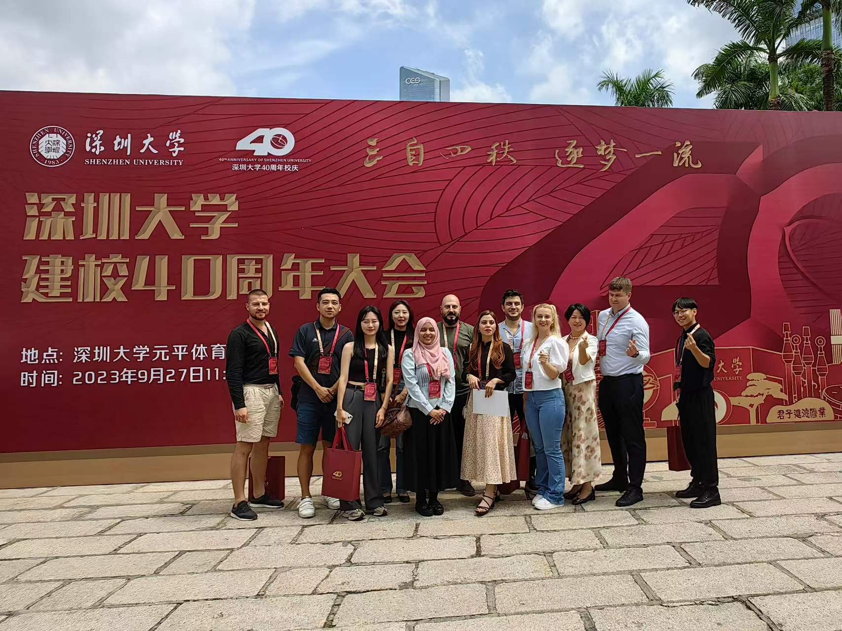 2023年9月27日,分别来自巴基斯坦、塞尔维亚、韩国、日本、俄罗斯、印度尼西亚、土耳其、埃及、越南等国家的数十名深圳大学国际交流学院国际学生校友返校参加深圳大学建校40周年系列校庆活动。