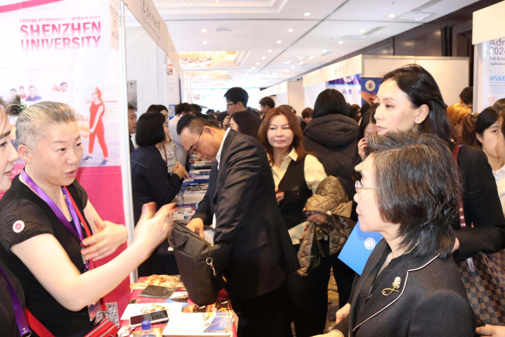 沈敏娟大使特地参观了深圳大学展位,表达了自己对深圳经济特区的积极看法,也衷心希望未来会有更多蒙古学生到深圳大学留学。