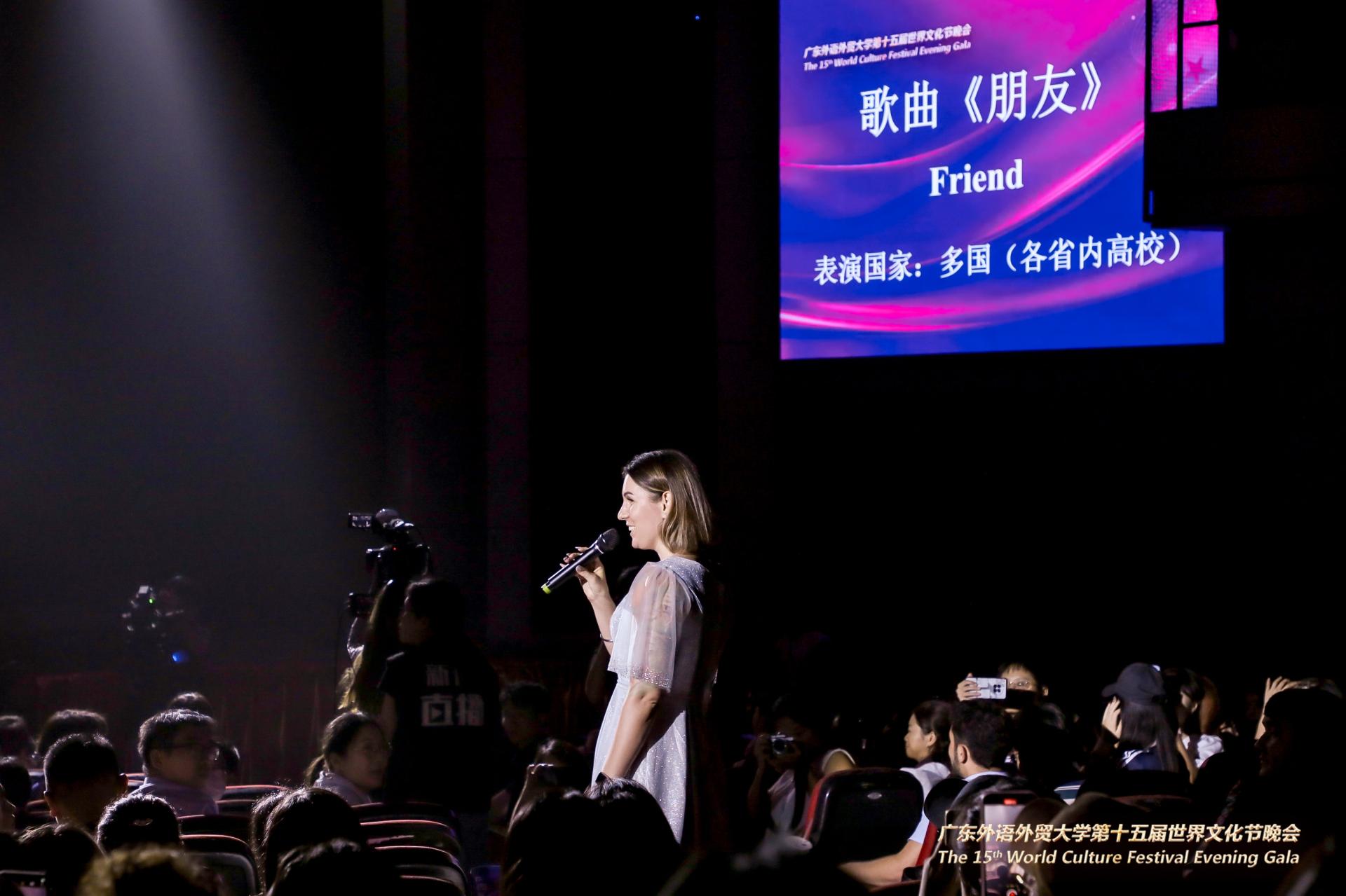 最后一个节目是由深圳大学国际合唱团与各国留学生共同献唱的多语版《朋友》,深情婉转的歌声道出了世界人民间的深厚情谊。台下观众纷纷挥舞手中的闪光灯与荧光棒,与演出人员亢音和鸣,唱响世界大同的美好愿景。