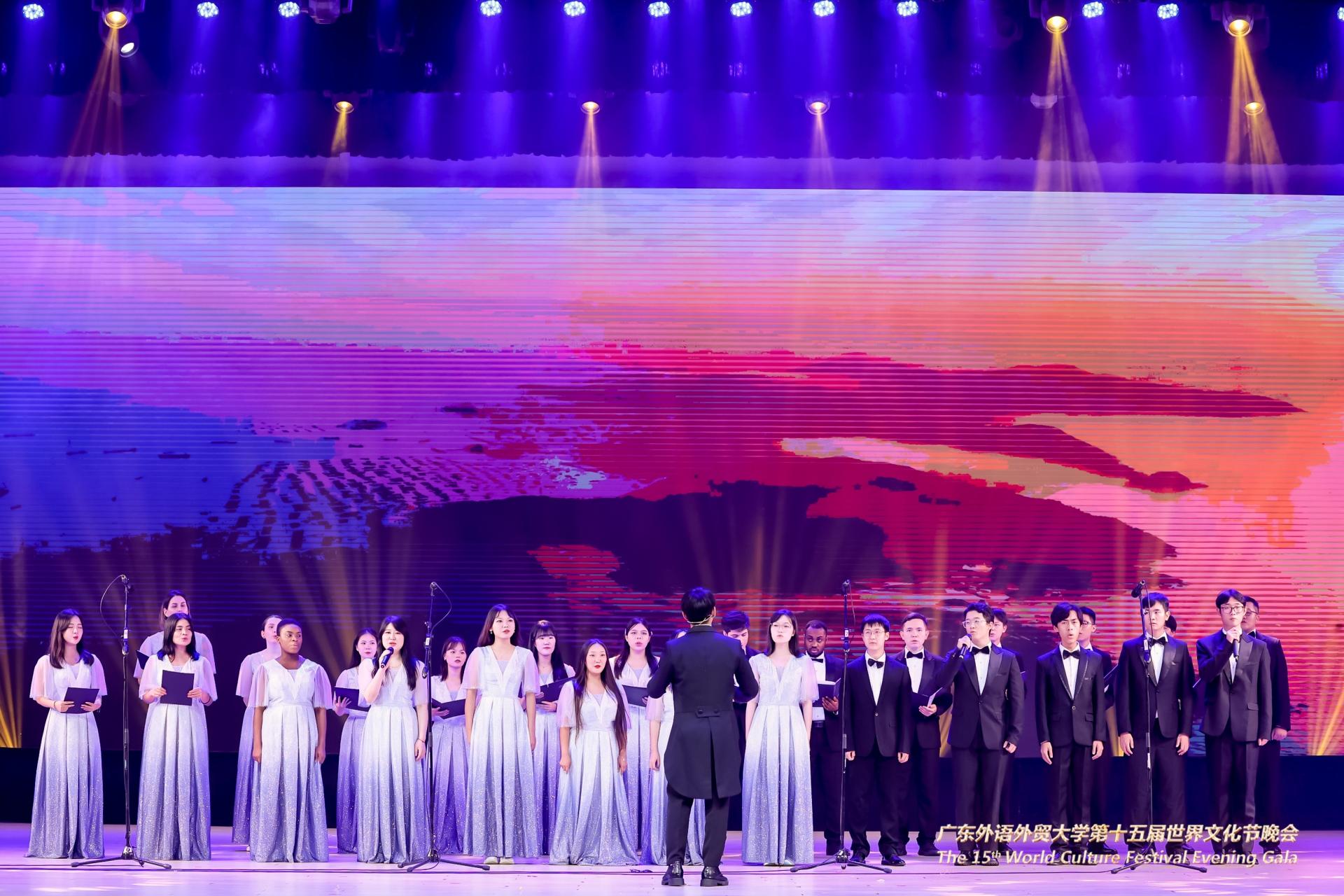 2023年11月9日,深圳大学国际合唱团受邀参加广东外语外贸大学第十五届世界文化节,国际交流学院张大强副院长、学生事务办公室张倩婷老师及30余名学生参与此次活动。深圳大学国际合唱团在世界文化节晚会上首次展演一带一路原创歌曲《梦想之路》并演唱《朋友》,现场气氛十分热烈。