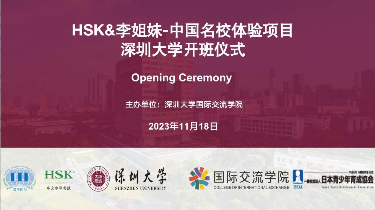 11月18日,由汉考国际与HSK日本事务局中文学习测试中心主办,深圳大学承办的2023年HSK&李姐妹中国名校体验项目开班仪式在线举行。