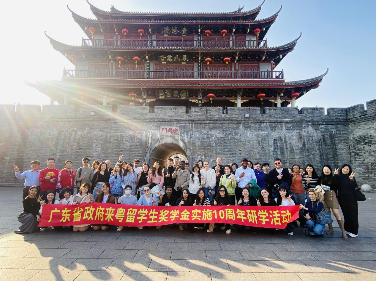 图为广东省政府来粤留学生奖学金实施10周年研学活动合影