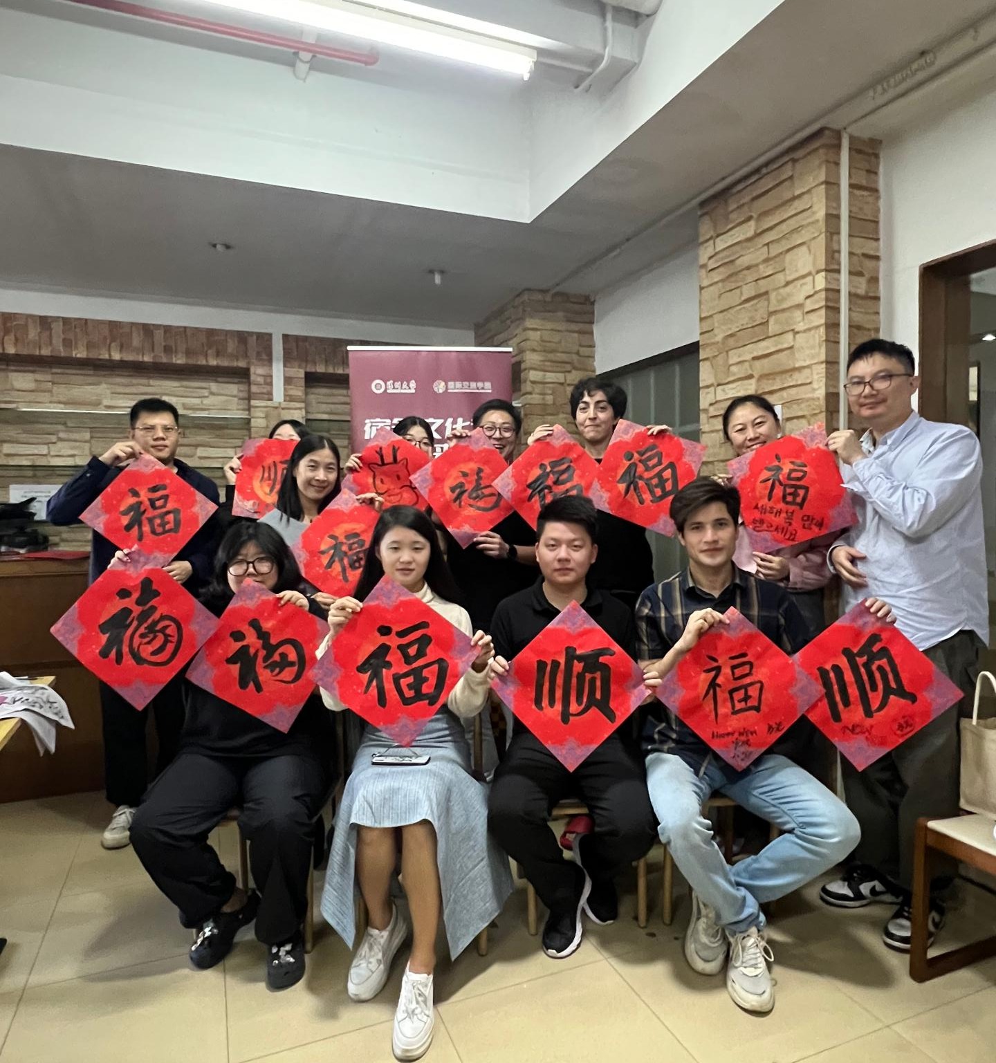 首届宿舍文化节第三场活动——迎新春、写春联大体验于2024年1月10日下午举行?;疃殖?,深圳大学书法协会的两名会员同学指导留学生们书写书法作品,留学生们动手拿起毛笔,练习书法。随后,在书法协会会员同学的指导下,留学生开始用毛笔字书写“福”字和春联,并主动了解?!弊炙毯纳羁毯?。留学生们在欢乐祥和的新年氛围中迎接新年的到来,并表示要把新春的美好祝愿用中国汉字的文化的形式传递给新的一年。