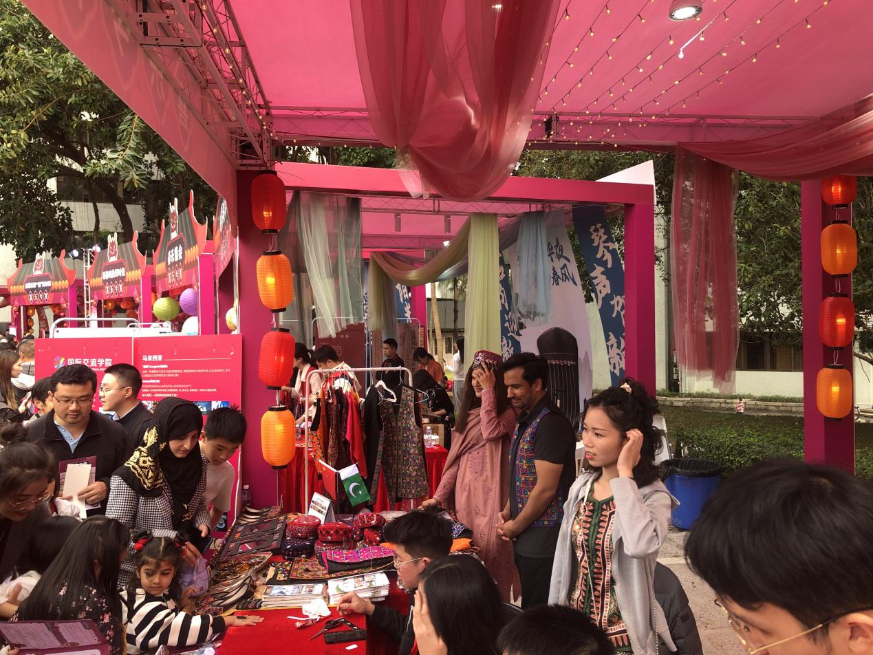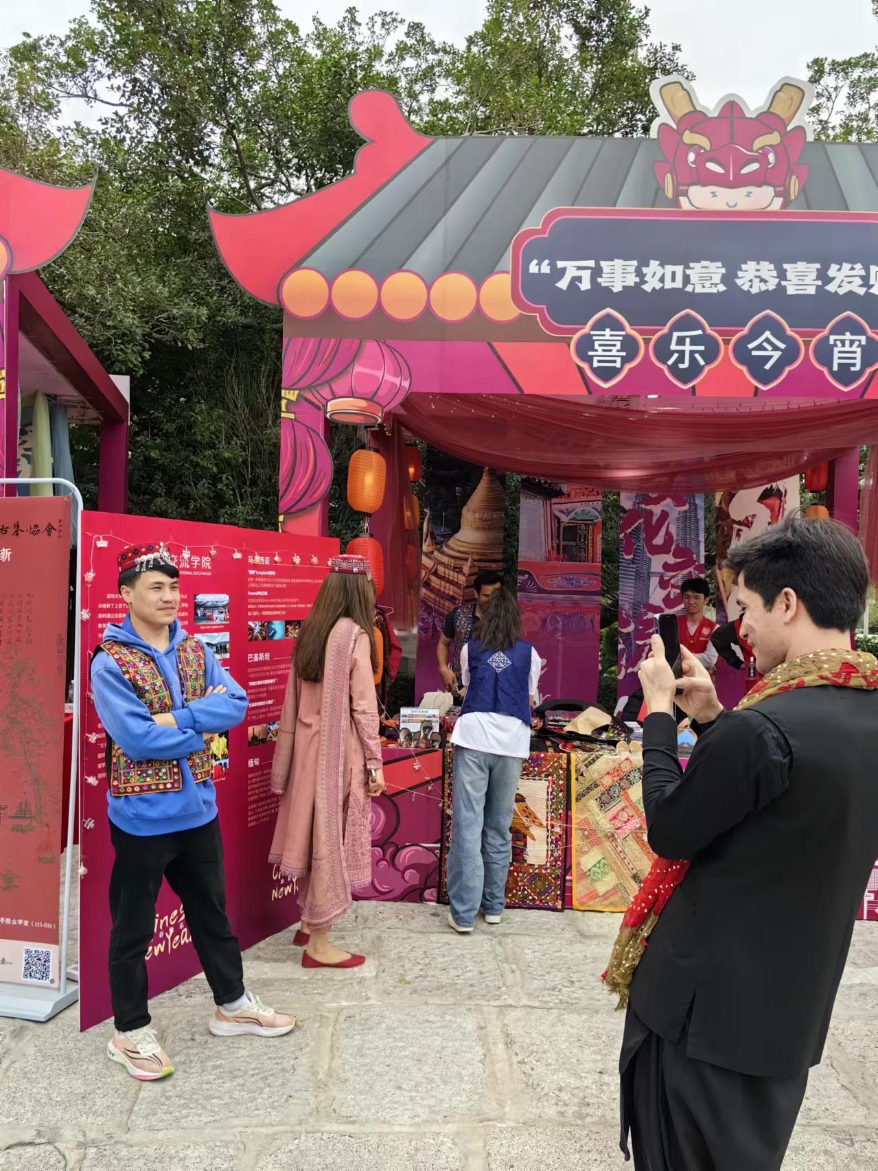 “万事如意·恭喜发财”摊位,由来自我院巴基斯坦、马来西亚和缅甸的留学生们负责。这次,他们带来了巴基斯坦传统服饰换装,马来西亚冲格弹珠游戏、传统海娜粉手绘以及缅甸特色奶茶。巴基斯坦留学生方尧(Qaisar hayat)身着本国传统服饰,热情地与大家互动。他说,留学生们可以通过活动展示各自国家的文化,也因此更加深入地了解了中国传统文化?!拔颐呛芟硎苷飧龌疃墓?,相信两国之间的友谊会越来越深厚!”