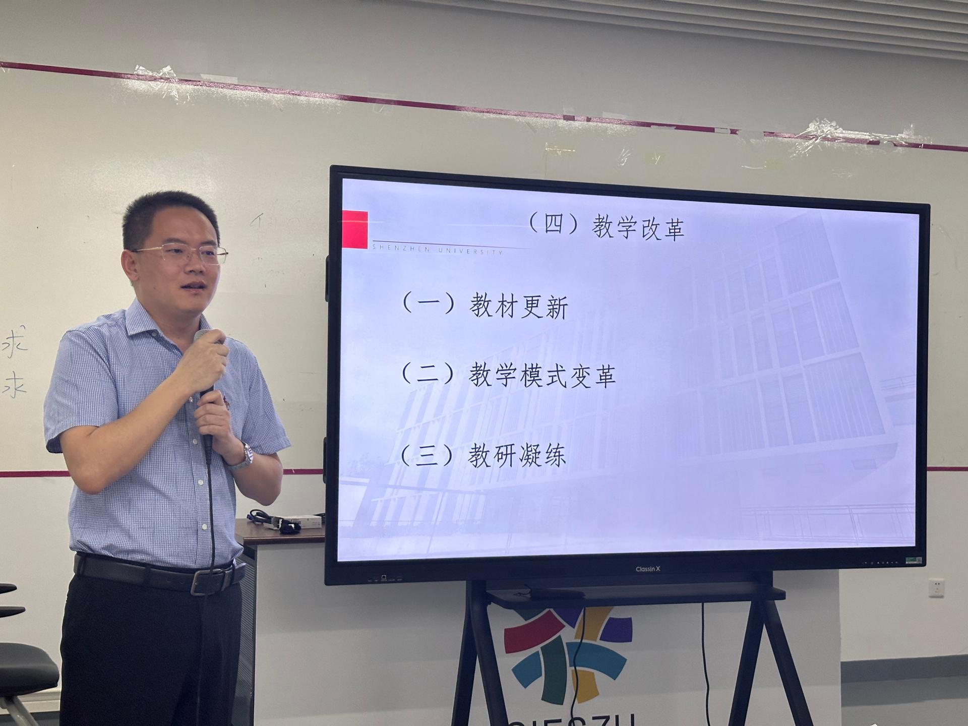 接下来,张大强副院长传达了学校本科教育教学审核评估迎评工作会精神,详细通报了当前迎评工作进展。他强调,全院要团结协作,全力以赴,积极配合做好材料调阅、听课看课、走访座谈等工作,以高标准高质量完成迎评促建各项工作。同时就《国际交流学院教师分类管理实施细则(试行)》修订稿进行详细讲解,进一步征求学院教师建议意见。