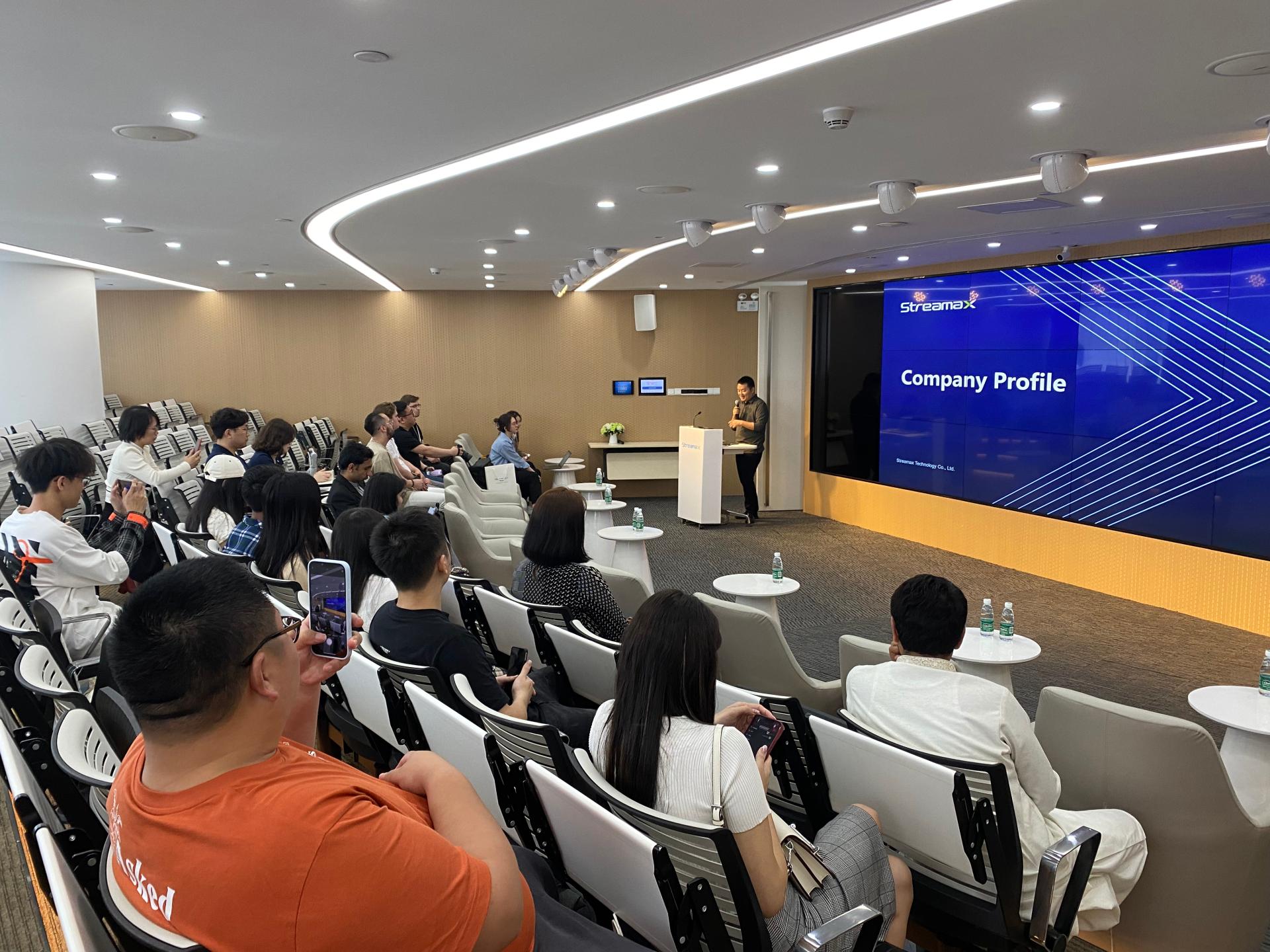 随后,师生一行来到锐明技术的多媒体会议厅,锐明技术首席技术官胡修彪老师为师生介绍了锐明技术的发展历程、企业文化、业务范围、研发制造领域等内容,为同学们精心准备了一场收获颇丰的演讲。