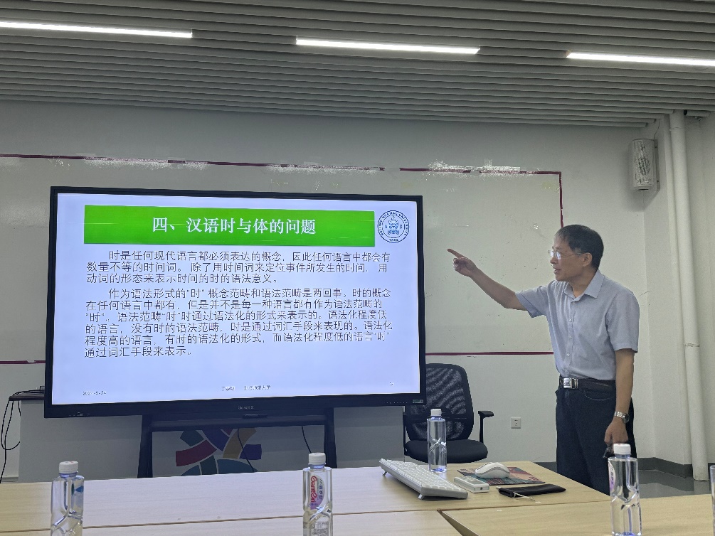 丁教授还特别分析了个别国际中文教育中常见的语言重点、难点问题,如“把”字句的使用、外国学生常见的句子偏误分析,以及汉语时与体的问题。他通过具体的语言材料和案例,为听众揭示了汉语语法的复杂性和美妙之处。