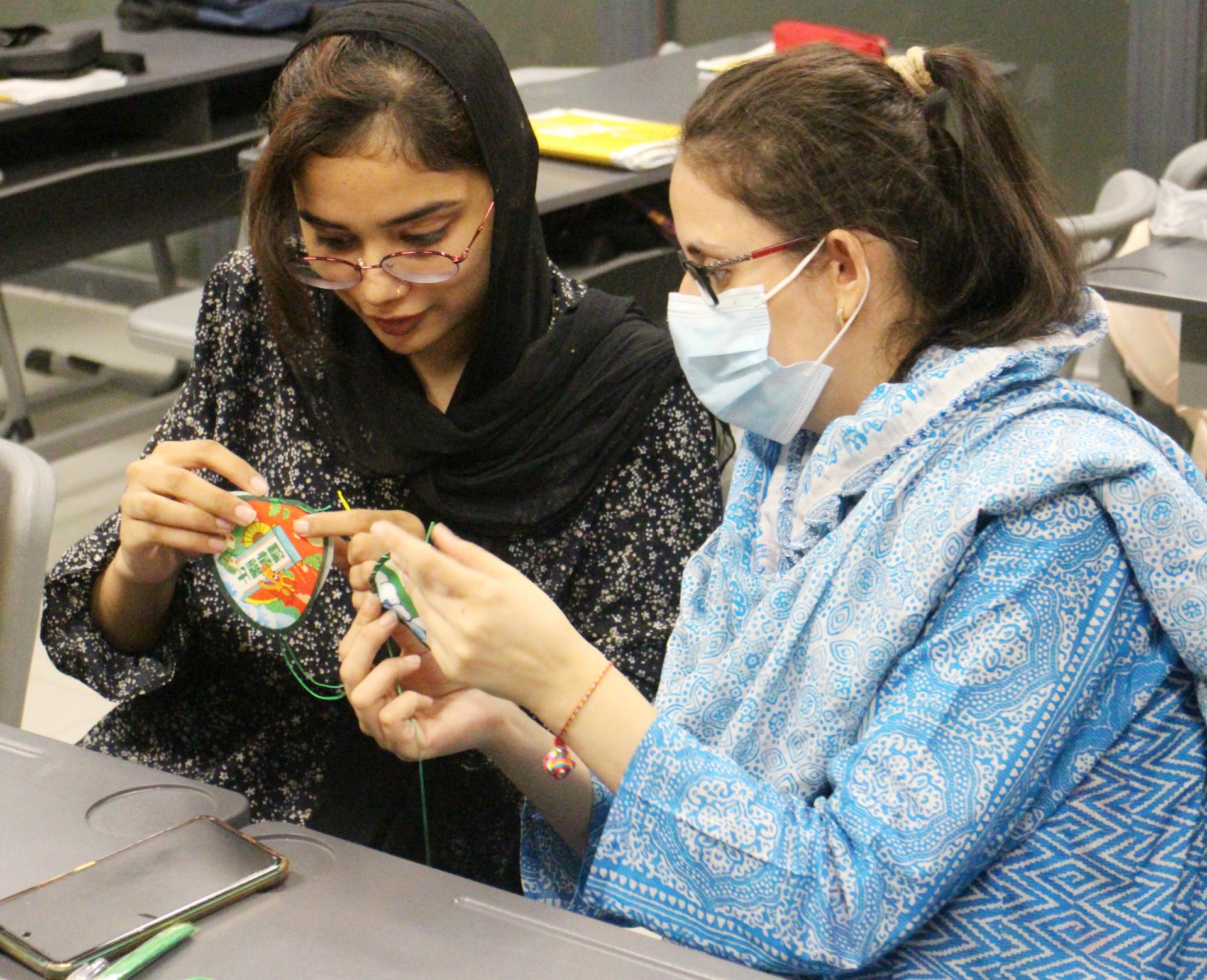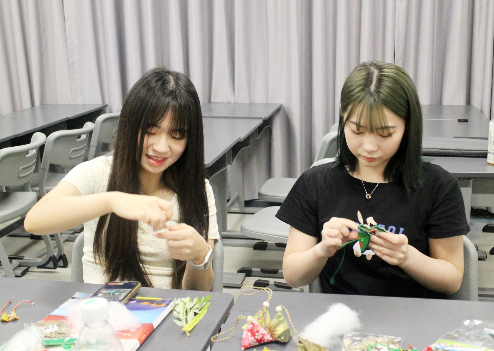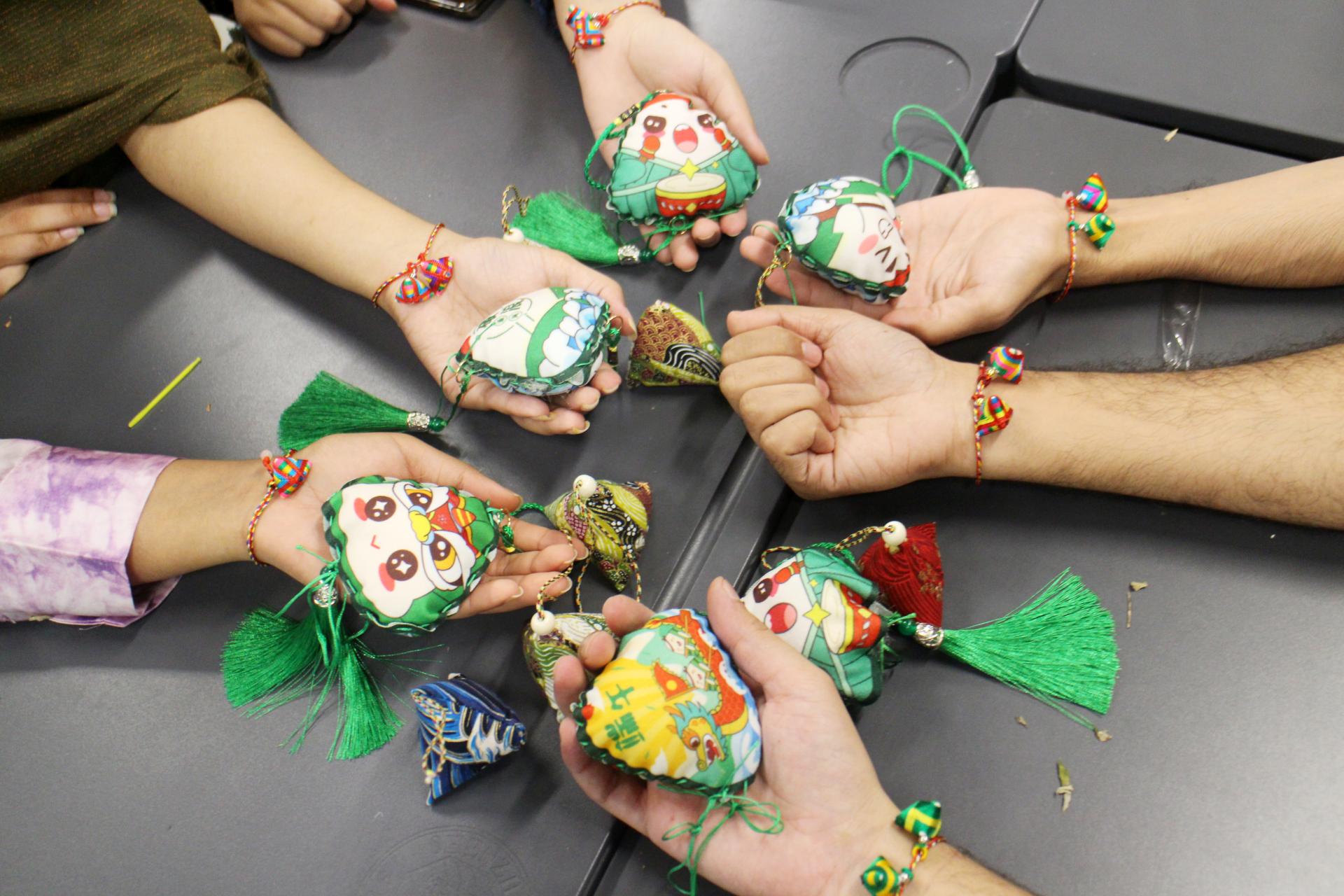 国际交流学院的老师在课堂上也带领学生开展了端午节主题班级活动。老师悉心为国际学生准备了制作香囊、五彩绳等物件的基础材料,并精心准备了教学课件引导学生们亲自动手制作。穿针、引线,在丝缕穿插之间,学生们与中华文化便产生了实质的勾连。通过动手缝制香囊、编制和佩戴五彩绳,学生在亲身实践的过程中更加深刻地体会了端午节的文化韵味。