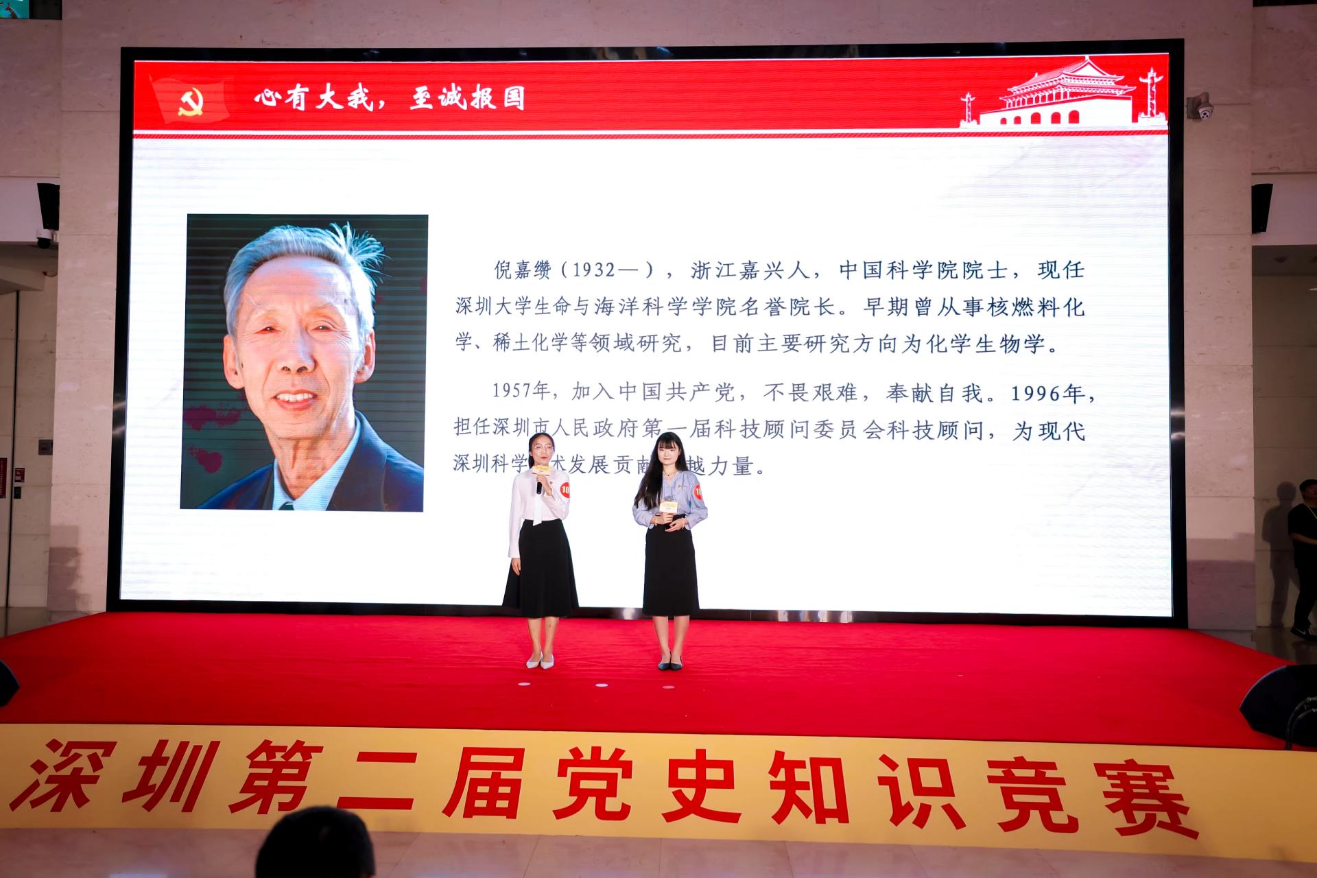半决赛现场,“湾区之星”队蒋冉晨、张倩婷老师以“心有大我,至诚报国”为主题,深情讲述了中国科学院院士、深圳大学生命与海洋科学学院名誉院长倪嘉缵的感人故事。她们通过生动的语言和精彩的讲述,展现了倪嘉缵院士对国家科研事业的执着追求和无私奉献,赢得了在场观众的阵阵掌声。