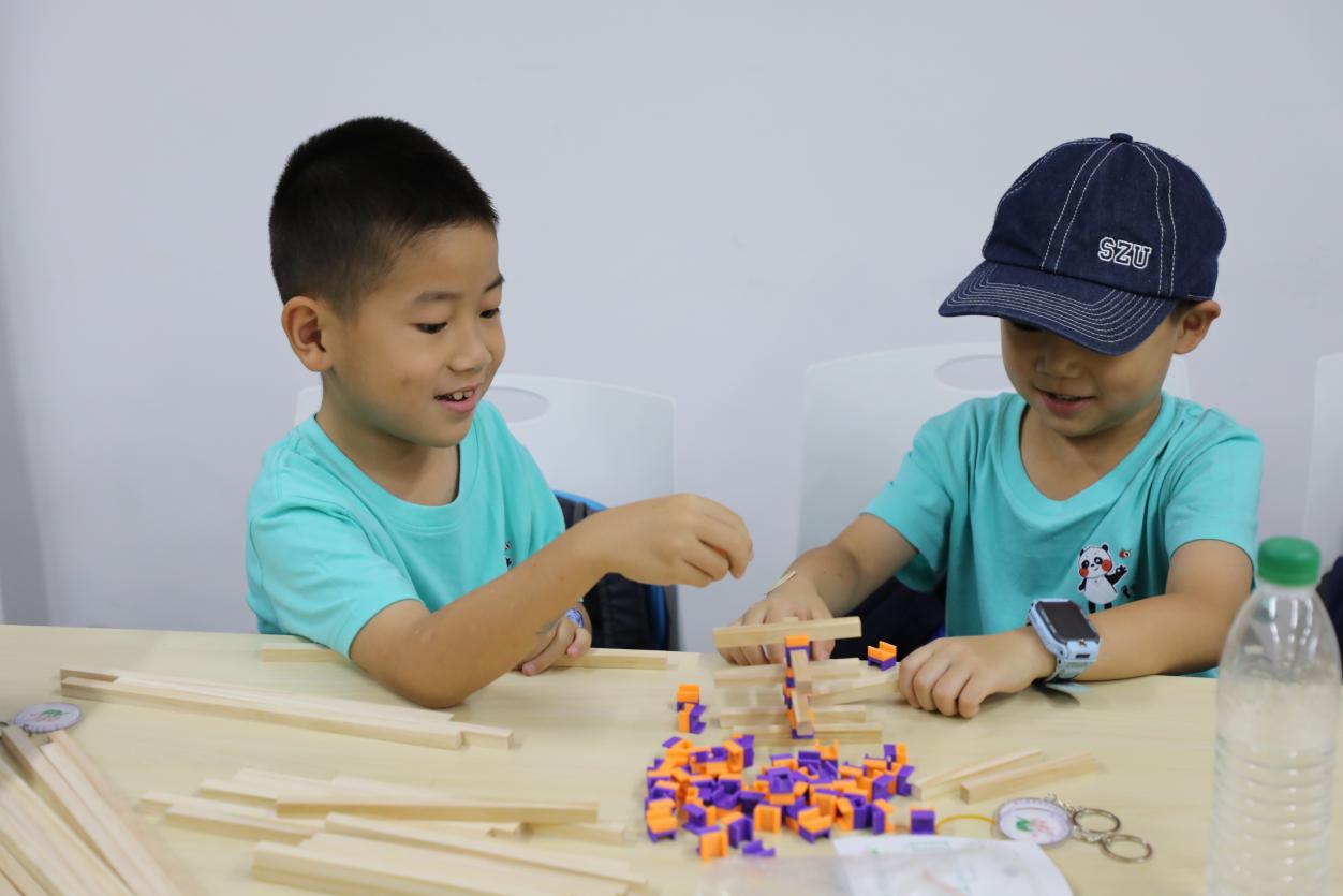 紧接着,在老师的悉心指导下,小朋友们纷纷动手实践,利用拼接组件这一有趣的材料,展开自己的建筑设计之旅。从简单的8个节点模型起步,他们逐步挑战更为复杂的设计,充分发挥想象力和创造力,不断探索和优化自己的作品。