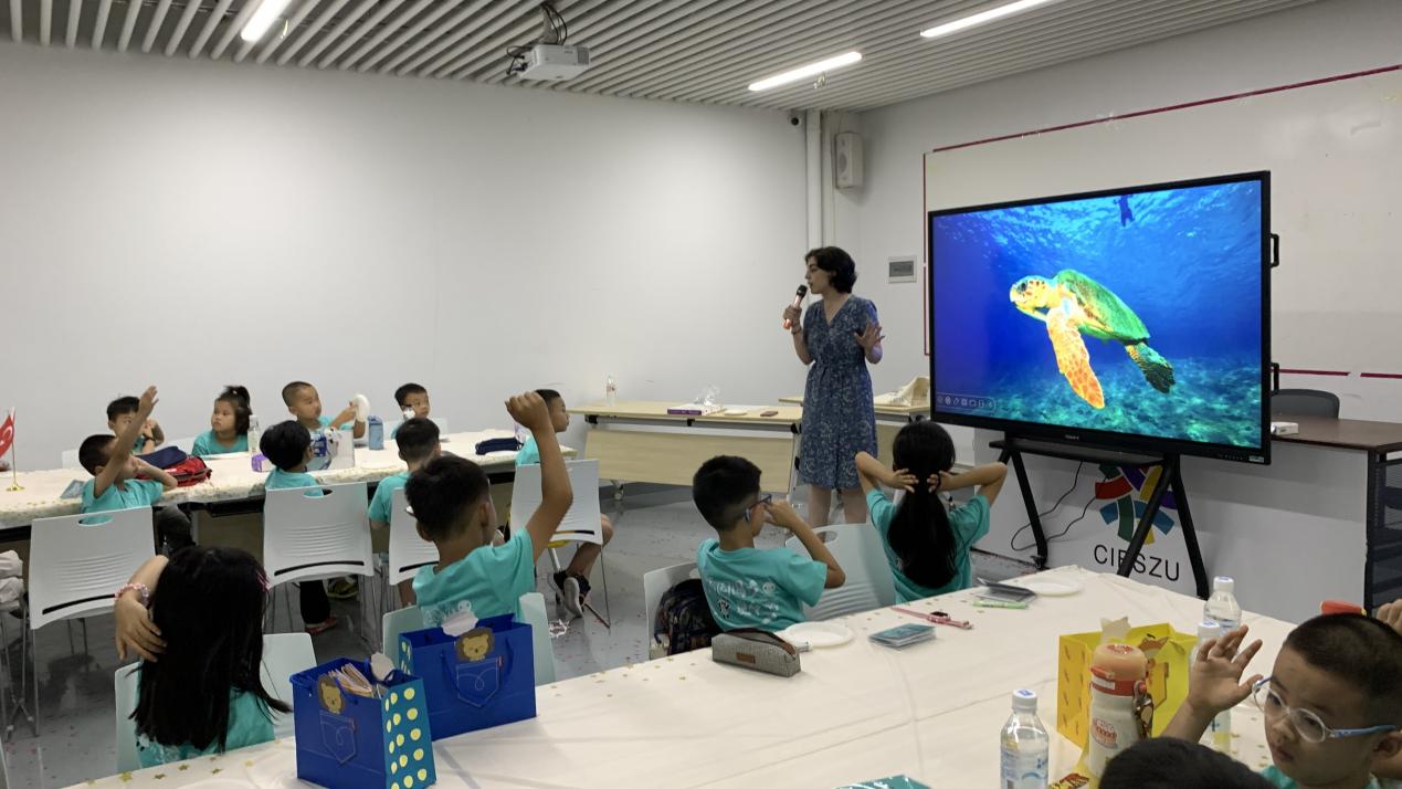 午后14:00至15:30,土耳其留学生阿诗玛(TOPRAK ESMA )热情地引领小班的小朋友们踏上了一段令人陶醉的土耳其文化之旅。在她的细致讲解下,小朋友们仿佛身临其境地感受到了伊斯坦布尔这座横跨亚洲与欧洲的城市的独特魅力,惊叹于博斯普鲁斯大桥的宏伟壮丽。借助于生动的图片和故事展示,卡帕多细亚的“仙女烟囱”与飘扬的热气球、大巴扎的热闹与繁华像一幅幅画卷在小朋友眼前展开,不仅让小朋友们对土耳其的自然美景和丰富文化有了深刻的认识,更激发了他们对未知世界的好奇心和探索欲。