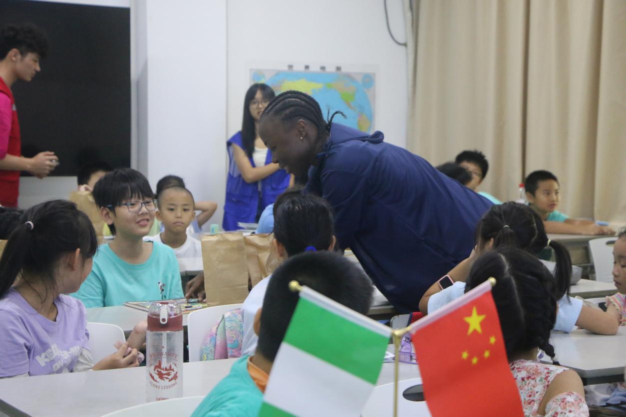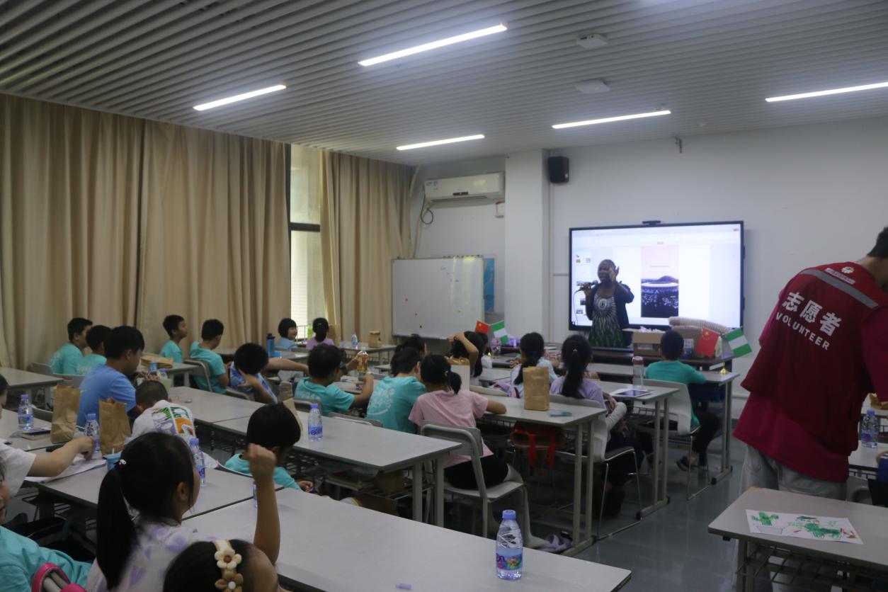 与此同时,大班的小朋友们在尼日利亚留学生葛杰敏(SUNDAY JEMMIMAH GLORY)的带领下,仿佛穿越时空,邂逅了非洲明珠——尼日利亚。从区位、人口、民族到多样气候,再到语言、宗教、货币和主要产业,小朋友们对尼日利亚有了全面的认识。一张张多彩炫目的图片与视频资料中,让小朋友们仿佛亲临现场,领略了尼日利亚传统舞蹈与现代流行舞蹈的激情碰撞,感受到了著名城市的独特韵味与房屋建筑的别具一格,惊叹于旅游景点的壮观景色和传统美食的诱人风味。他们还结识了尼日利亚在运动、文学与音乐领域的璀璨明星,深入了解了尼日利亚的车文化。丰富而精彩的介绍将小朋友们引领至尼日利亚的神奇世界,他们被眼前的一切所深深吸引,沉醉在这趟知识的冒险之中,紧随着葛老师的步伐,积极参与互动共同探寻尼日利亚所蕴含的无限魅力与奥秘。
