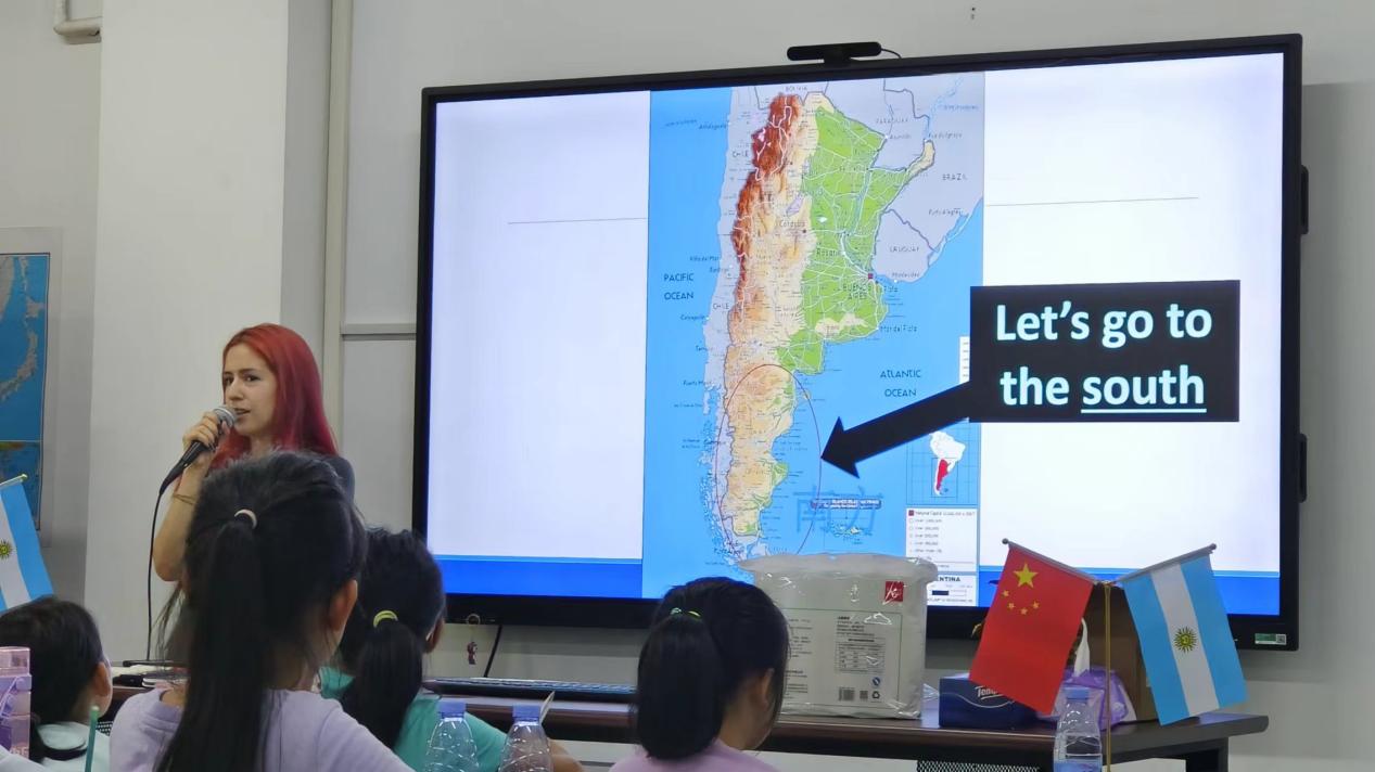 2点至3点半,小班的小朋友们在阿根廷留学生路辰霄(BAIGORRIA LUCIA ANDREA)的悉心引导下,首先用笔触记录下他们对这个遥远国度的初步印象。随后,路辰霄老师带领他们踏上了一段精彩的阿根廷探索之旅。在这段旅程中,小朋友们初步了解了阿根廷的官方语言、地理位置、首都布宜诺斯艾利斯、国有企业以及流通货币等基础知识。接着,通过一系列引人入胜的图片展示,小朋友们仿佛亲身飞越了阿根廷广袤的土地,从南到北,欣赏了那里的壮丽山川、广袤草原以及独特的动植物群落。他们沉醉于这片土地上令人惊叹的自然美景之中。
