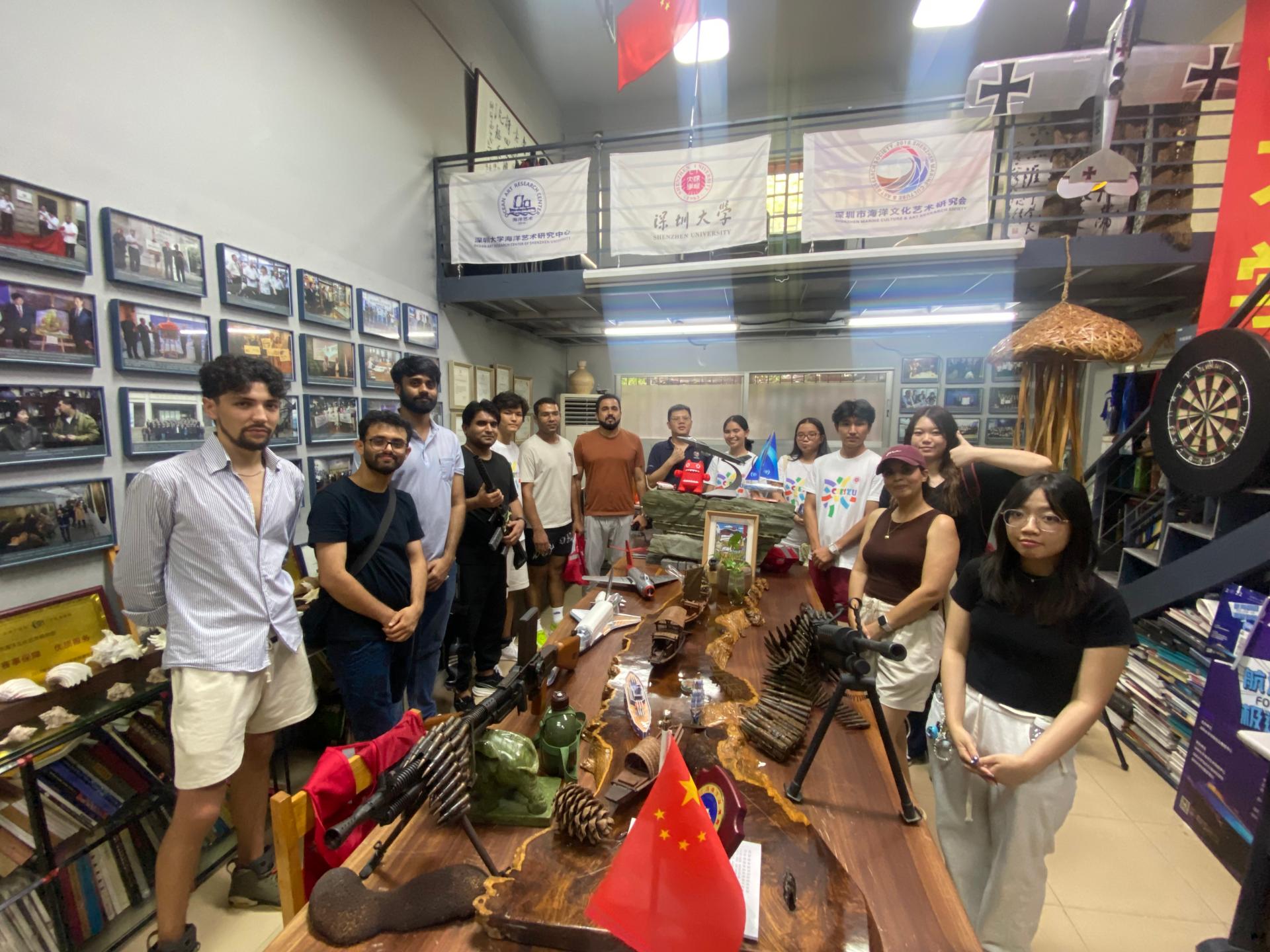 位于一楼的深圳大学海洋艺术研究中心,是中国首家以海洋艺术为核心的研究机构。这里汇聚了国内海洋学者、艺术家、古船专家和海图研究者的智慧与力量,致力于海洋文化艺术的研究与应用。中心不仅收藏了众多珍贵的海洋文物,还致力于中式帆船制作技艺的?;び氪?,以及中国流失海外古船模的发掘与梳理。新生们在这里领略到了海洋的浩瀚与神秘,对海洋文化产生了浓厚的兴趣。