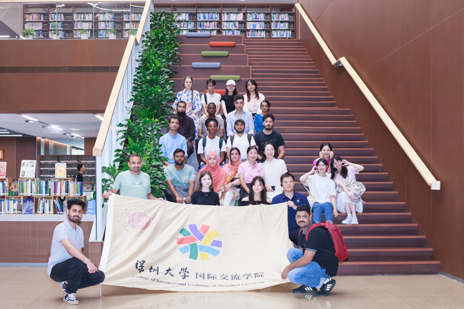 2024年9月19日,在深圳大学国际交流学院秦晴副书记、刘威老师的带领下,我校来华留学生新生踏上了丽湖校区中央图书馆的神秘探索之旅。