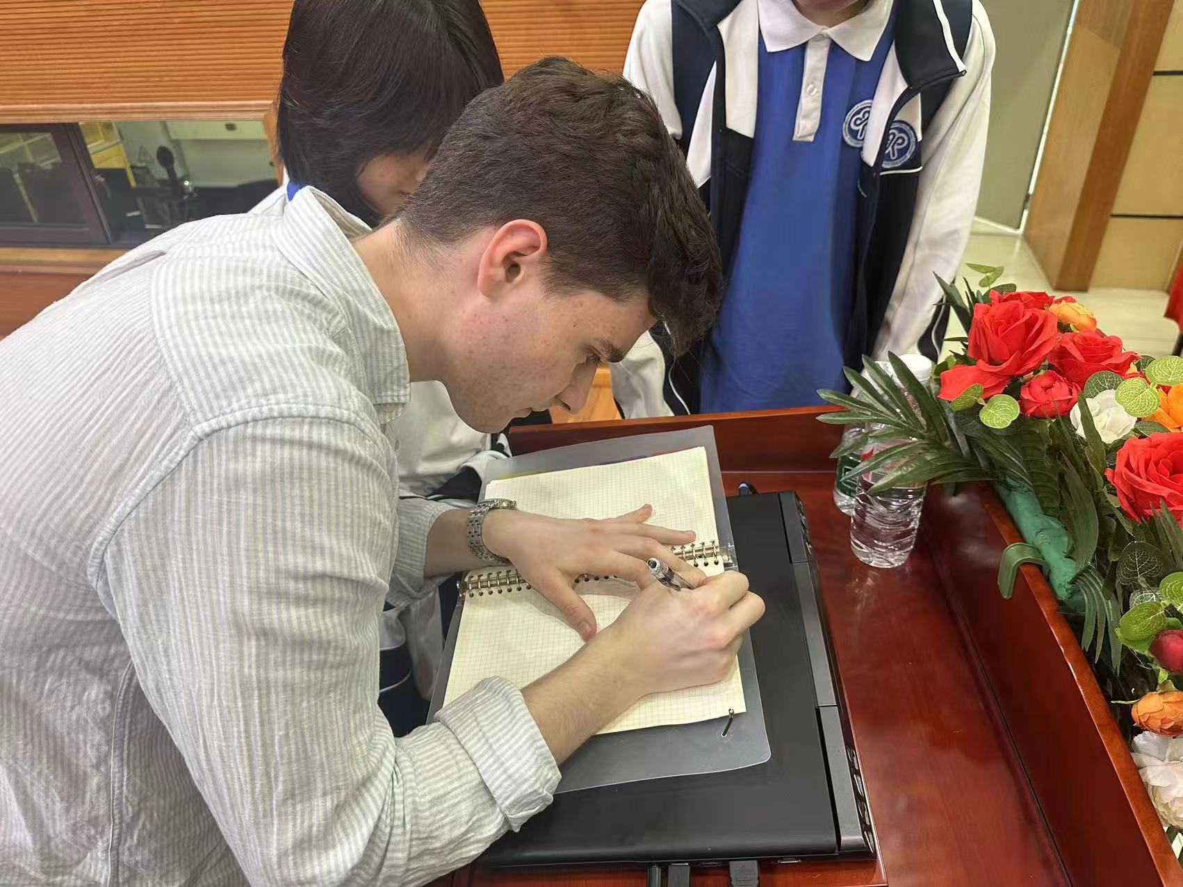 来自刚果的AMANI BAGALWA LANDRY(和平)同学分享了自己“甜蜜的烦恼”。他发现,无论是哪个国家的孩子,都对彼此充满了好奇,经?;崽岢鲆恍┝钊丝扌Σ坏玫奈侍猓热纾骸澳慊岢云嫫婀止值某孀勇??”这些天真无邪的提问,让他在忍俊不禁的同时,也深刻意识到各国文化交流的道路依然漫长而充满挑战。尽管如此,他依然热爱在繁忙的学习之余参与这类活动,因为小朋友们纯真的笑容总能治愈他的疲惫,而他也愿意成为连接不同文化的桥梁,助力不同文化间的沟通与理解。