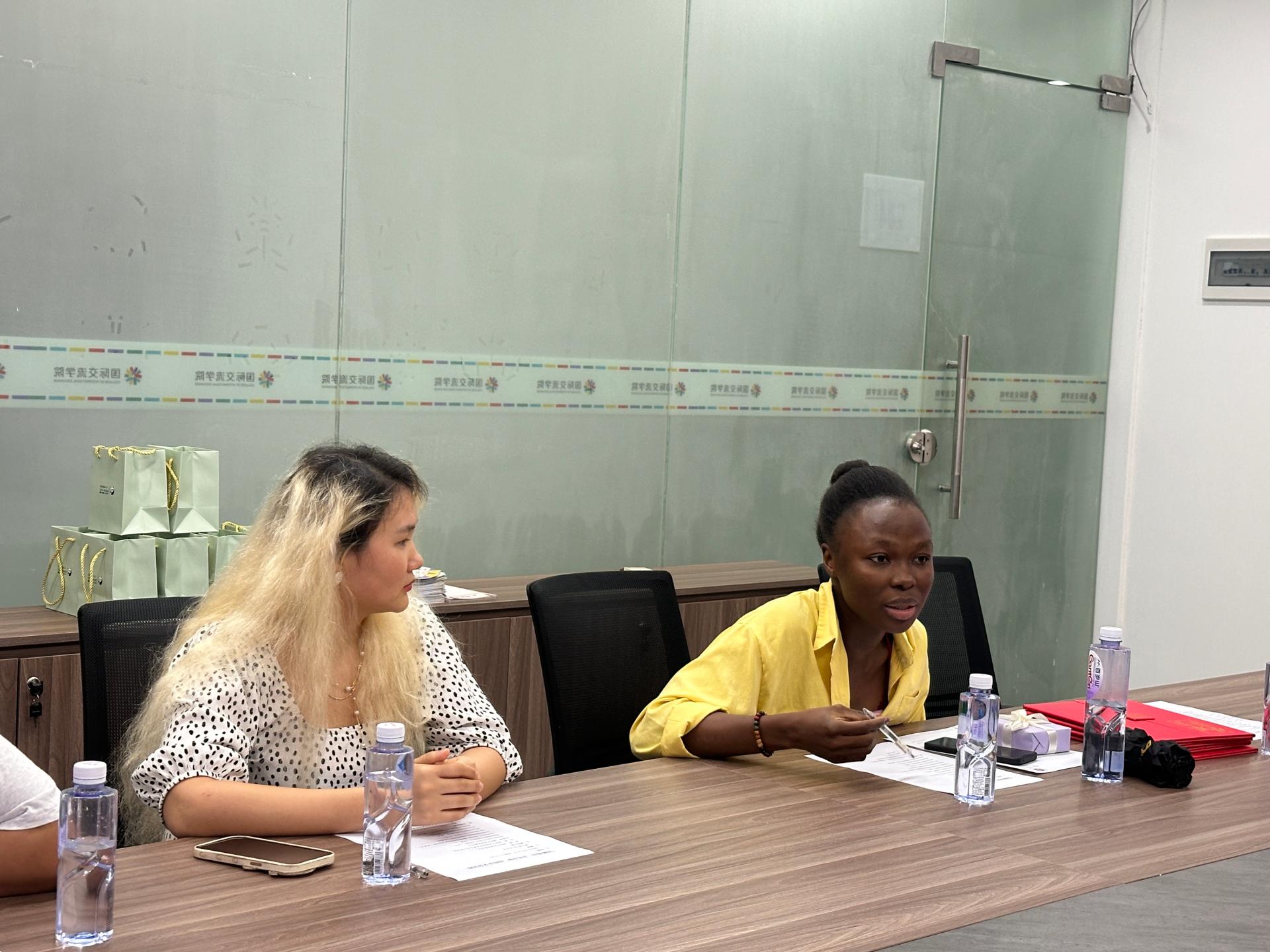 2024年9月25日,“丝路南山,文化互鉴”留学生总结分享会在朝夕楼204会议室顺利召开。国际交流学院秦晴副书记、刘威老师、张倩婷老师,4位参与“丝路南山,文化互鉴”授课的留学生代表参其中。